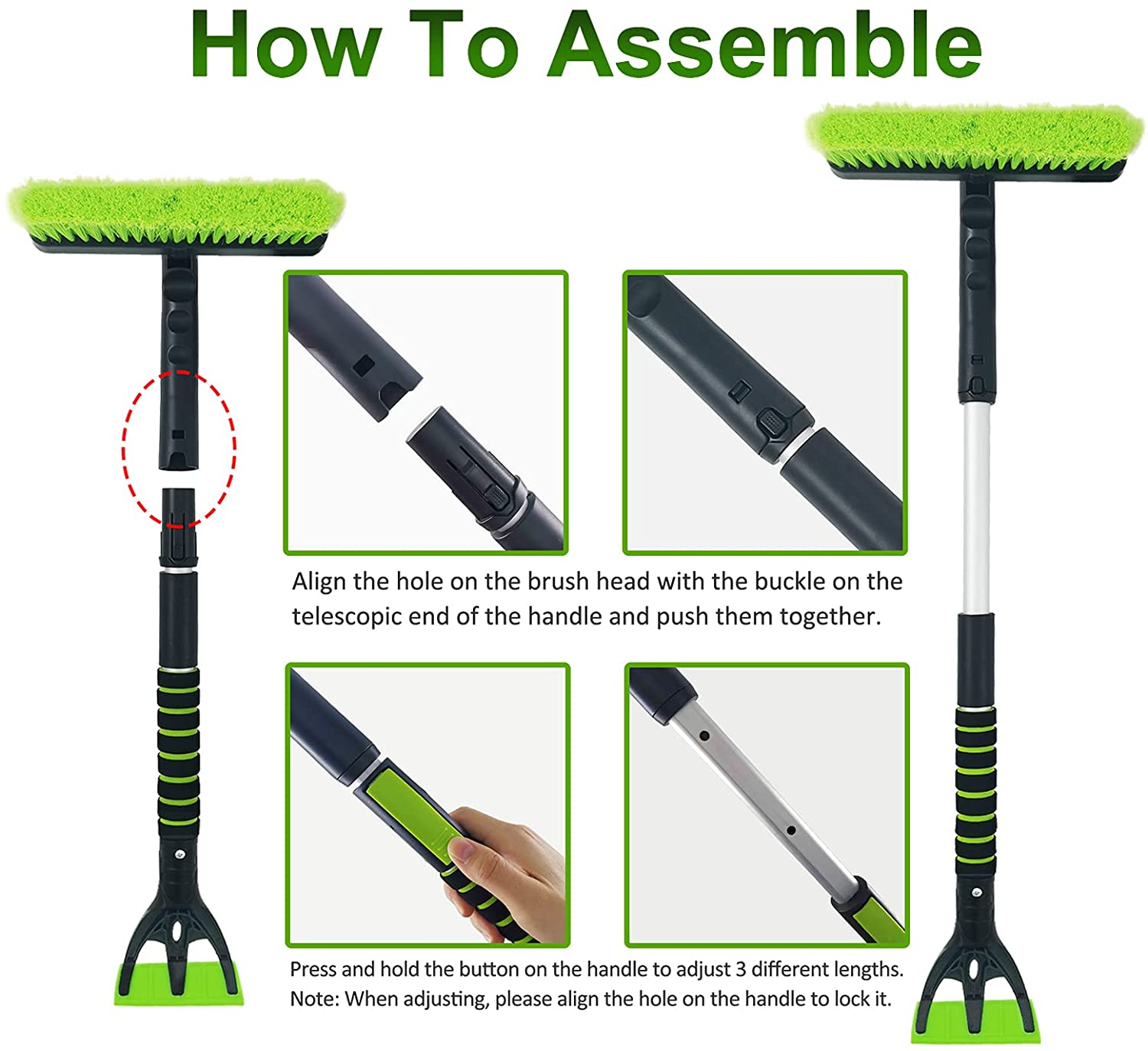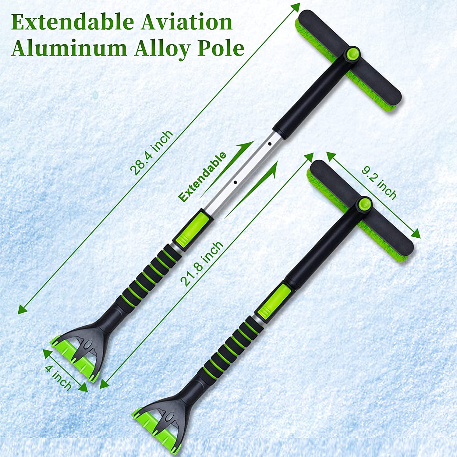 SEAAES Ice Scraper with Snow Brush for Car Windshield. Extendable Snow Brush with Foam Grip for Truck SUV Wehicle Windows