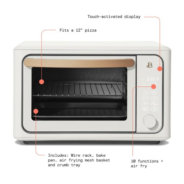 Beautiful 6 Slice Touchscreen Air Fryer Toaster Oven. White Icing by Drew Barrymore