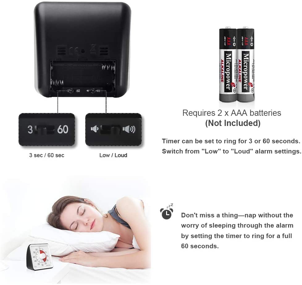Secura 60-Minute Visual Timer. Classroom Countdown Clock. Silent Timer