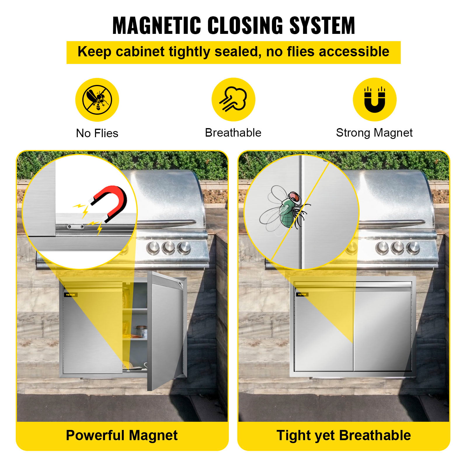 VEVOR Outdoor Kitchen Doors BBQ Kitchen Doors 30x23inch with Shelves Stainless Steel