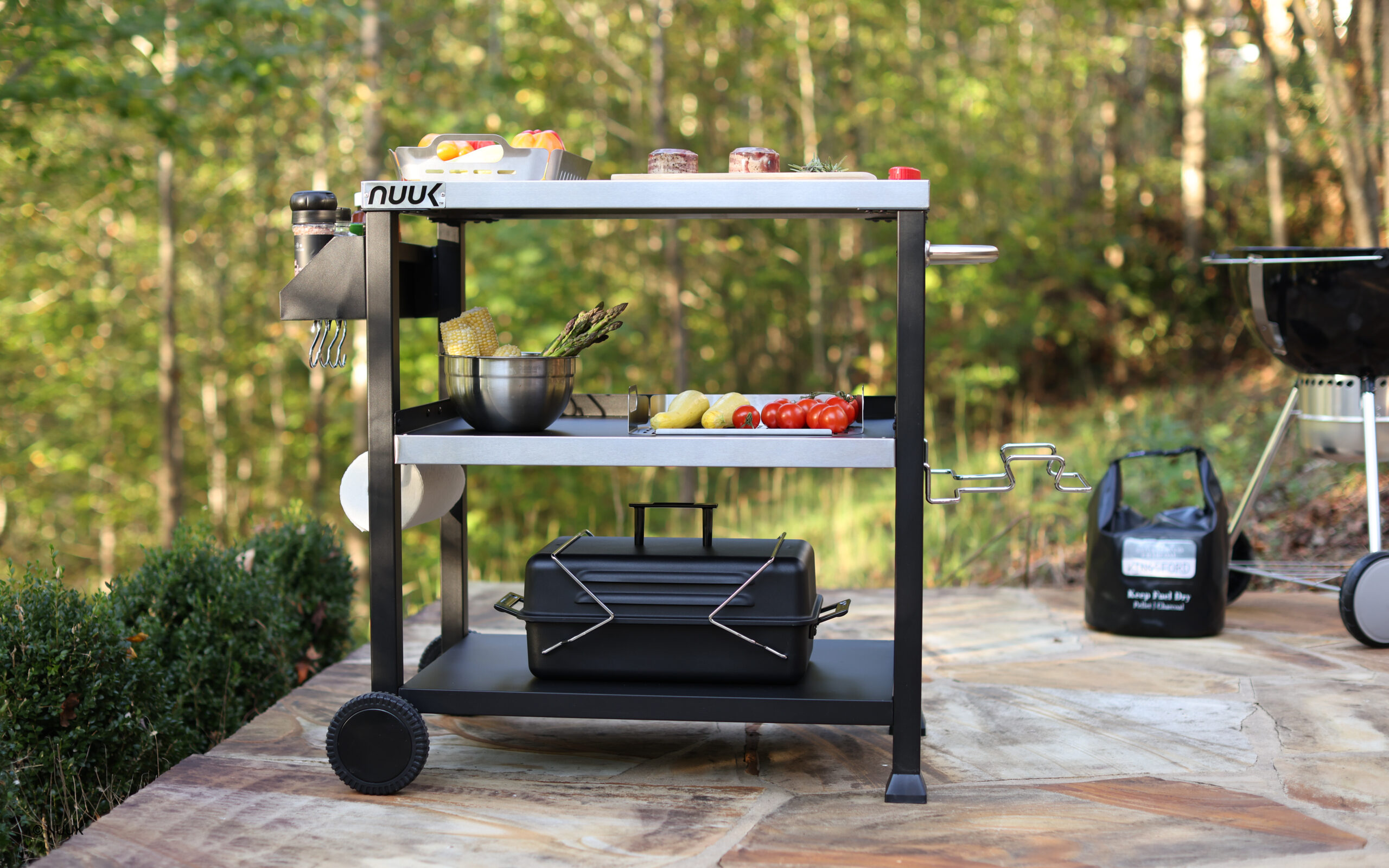NUUK Three-Shelf Movable Outdoor Dining Cart Table. 20″ x 32″ NSF Stainless Steel Commercial Multifunctional Prep Worktable on Wheels