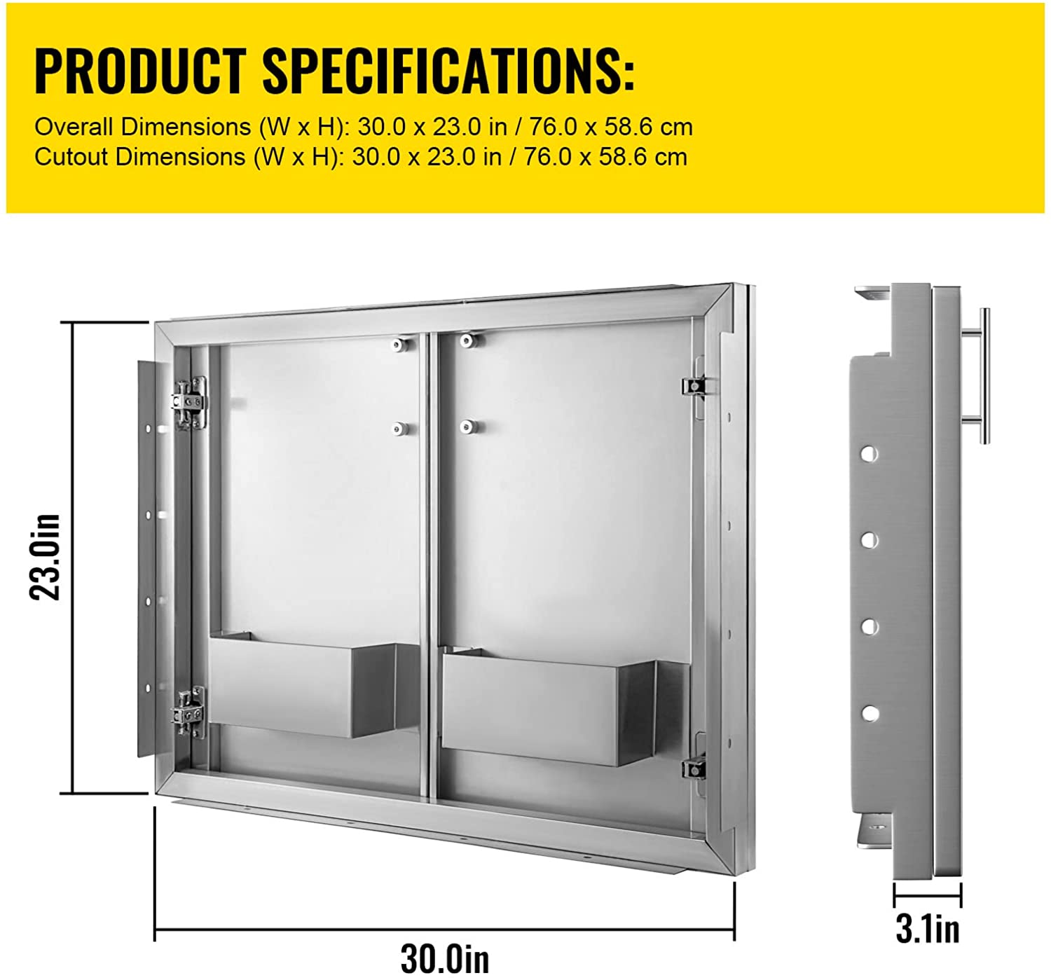 VEVOR Double Access Door. 30”Wx21”H Outdoor Kitchen Door. Double Wall Stainless Steel Outdoor Cabinets with Hooks