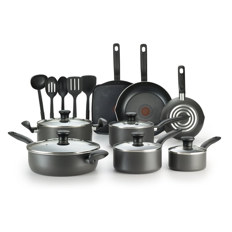 T-fal Initiatives 18 Piece Aluminum Nonstick Cookware Set & Cooking Utensils