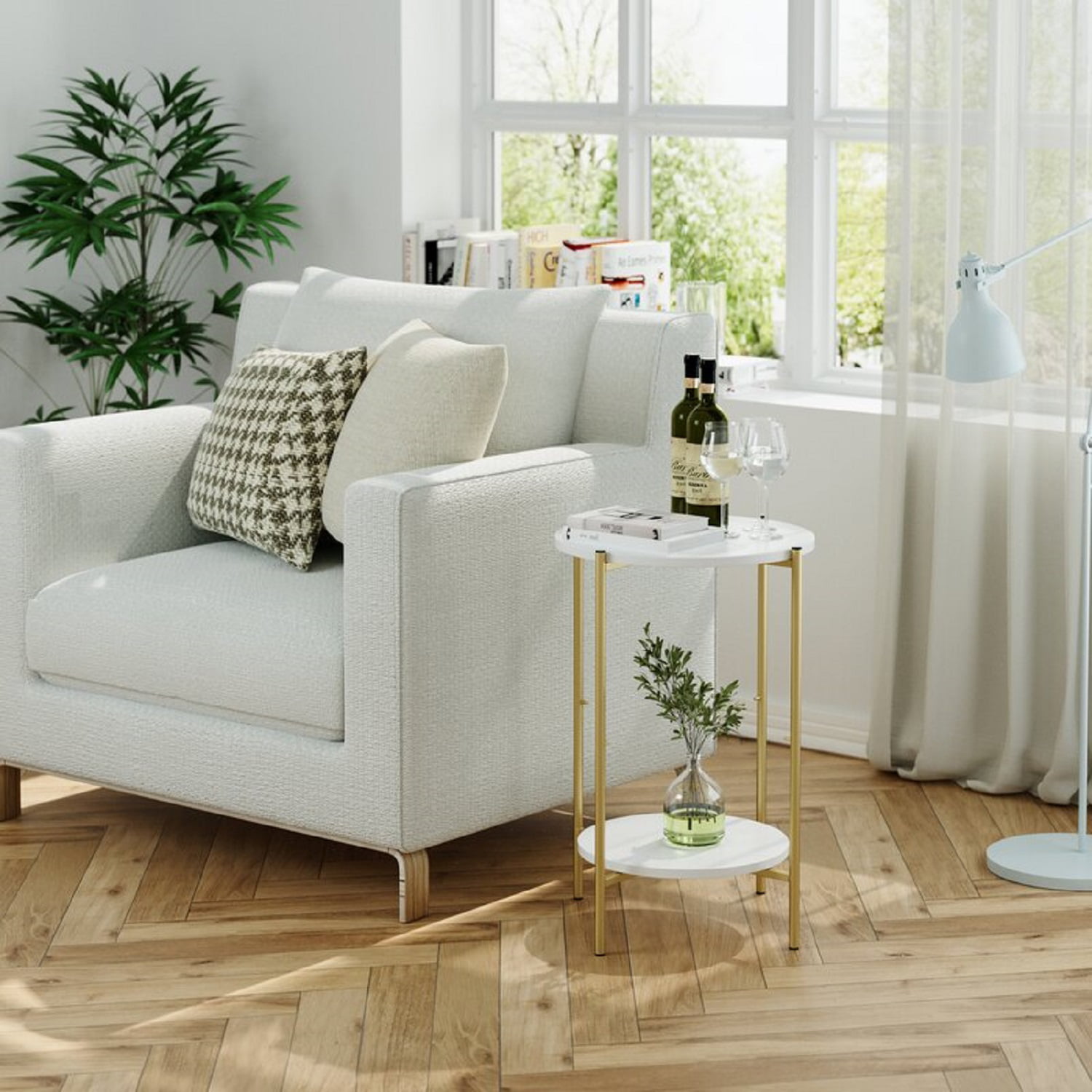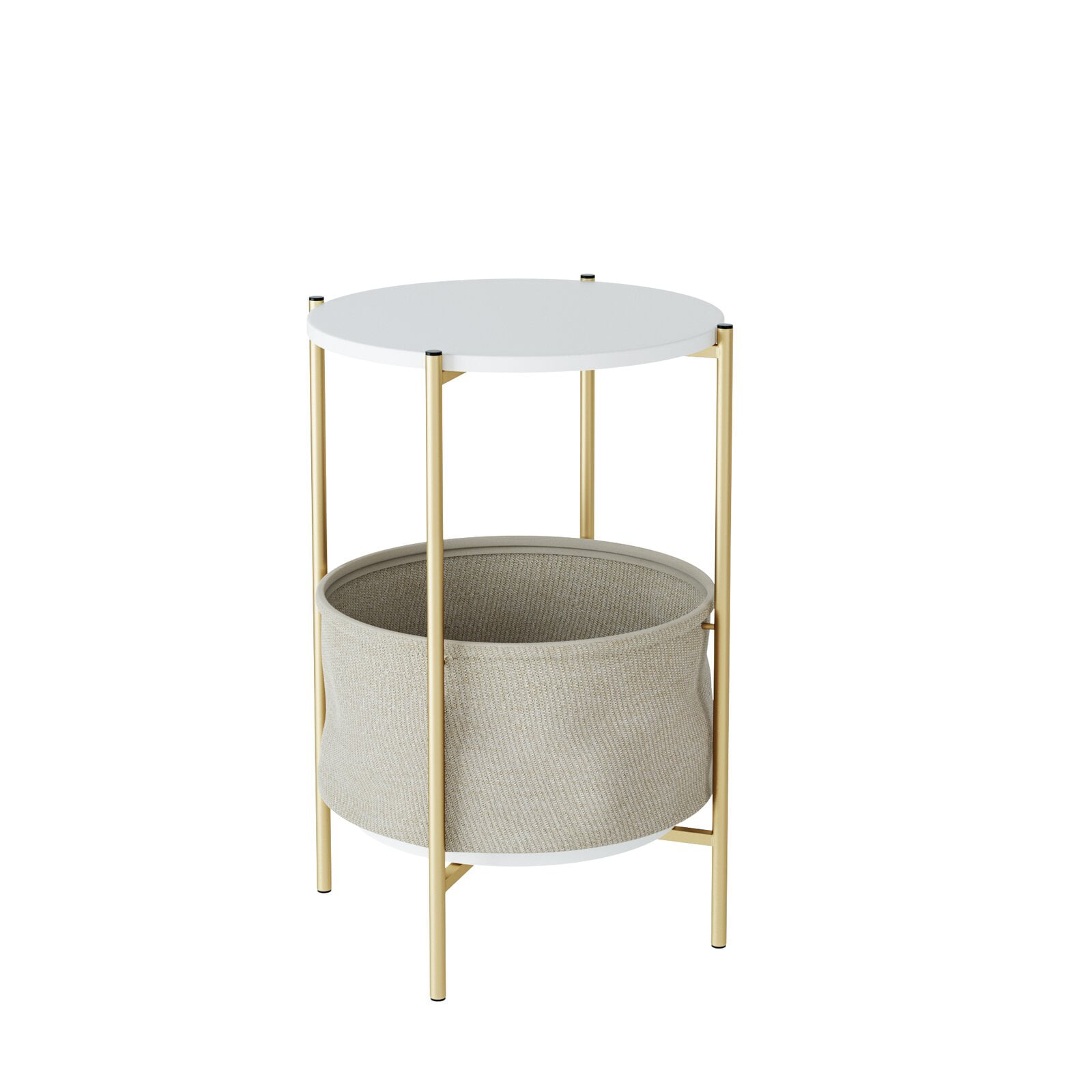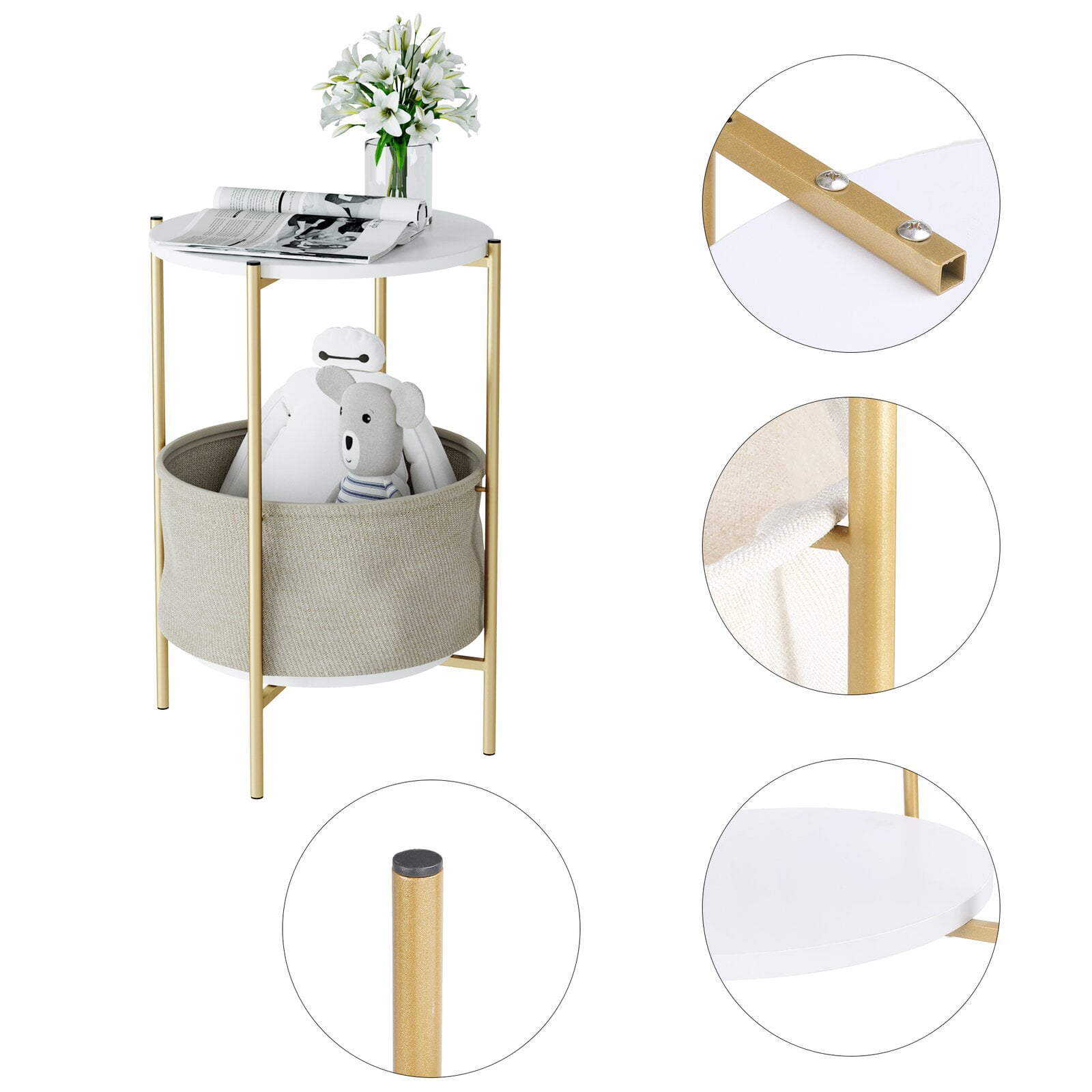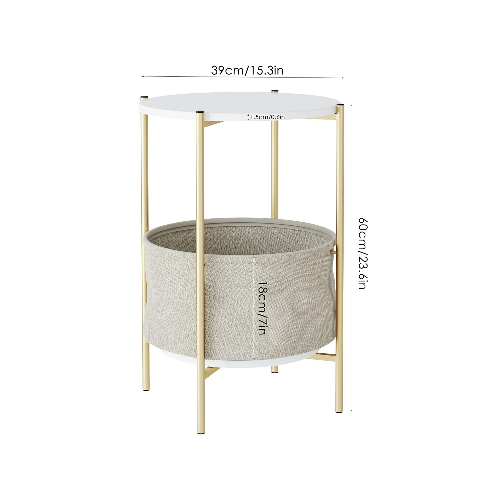 Homfa Iron Nightstand. 23.6” Tall Round Bedside Night Stand with Storage Pocket. End Side Table for Bedroom. Living Room.White and Gold