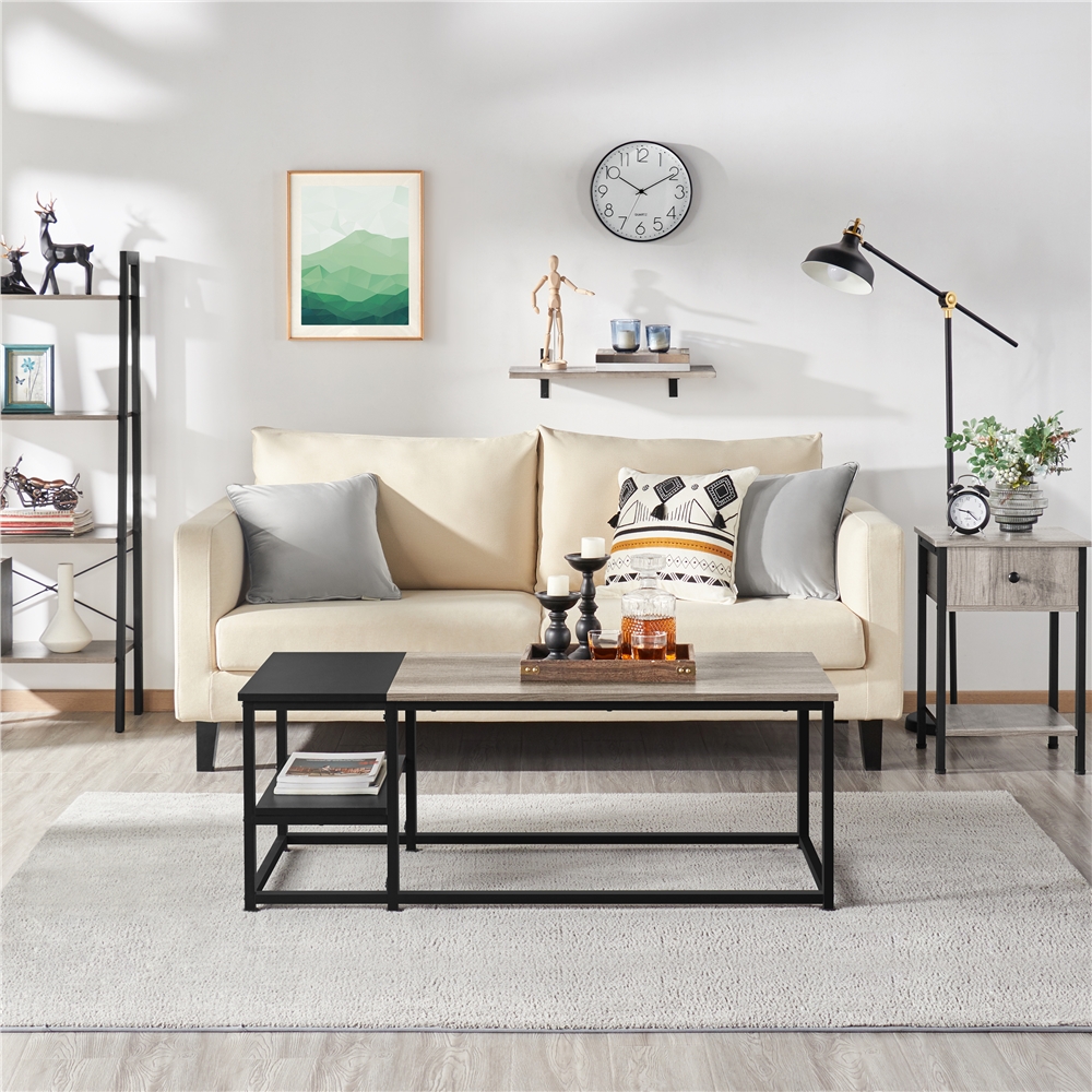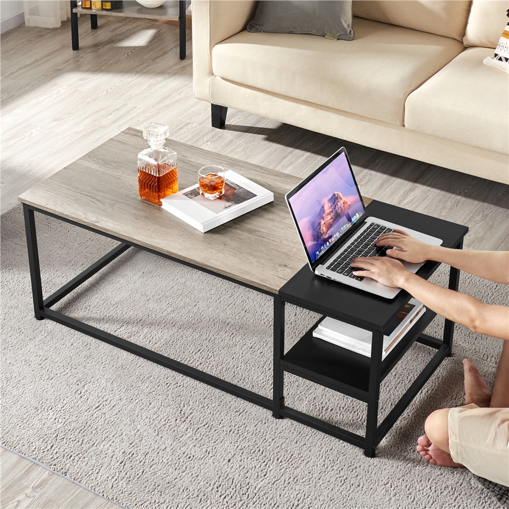 Yaheetech Modern Rectangular Coffee Table Wood Table with Shelf for Living Room.Gray/Black