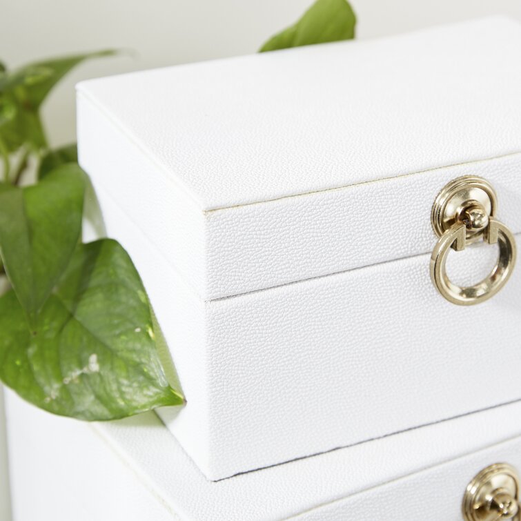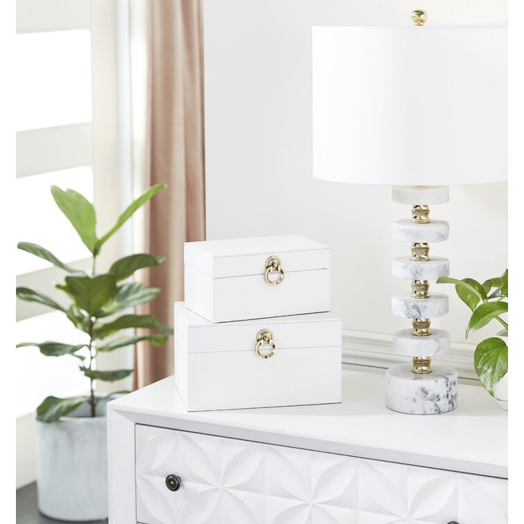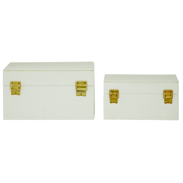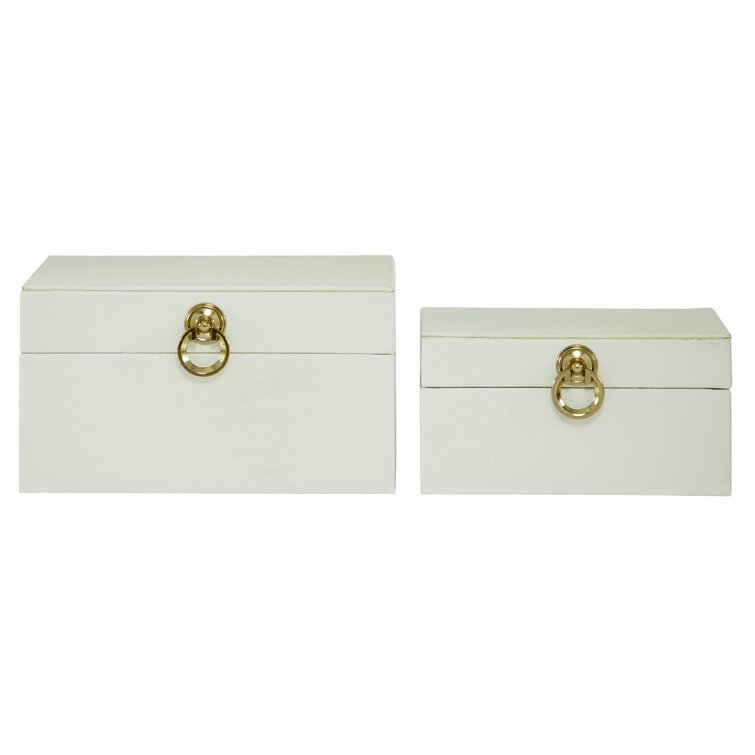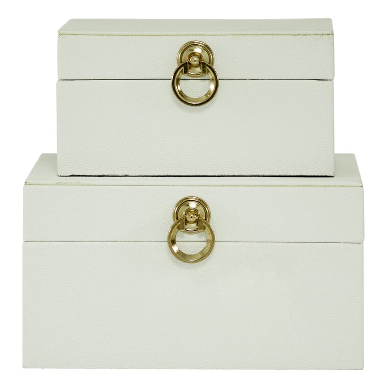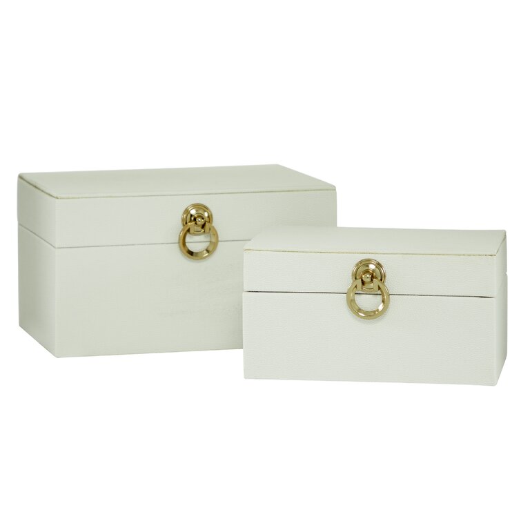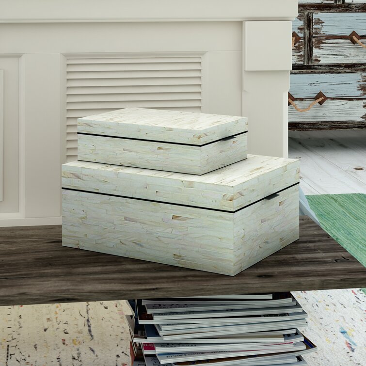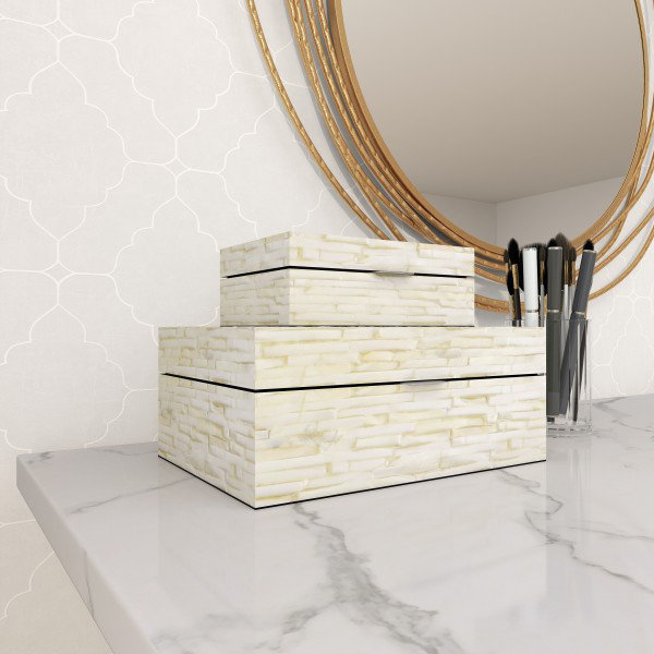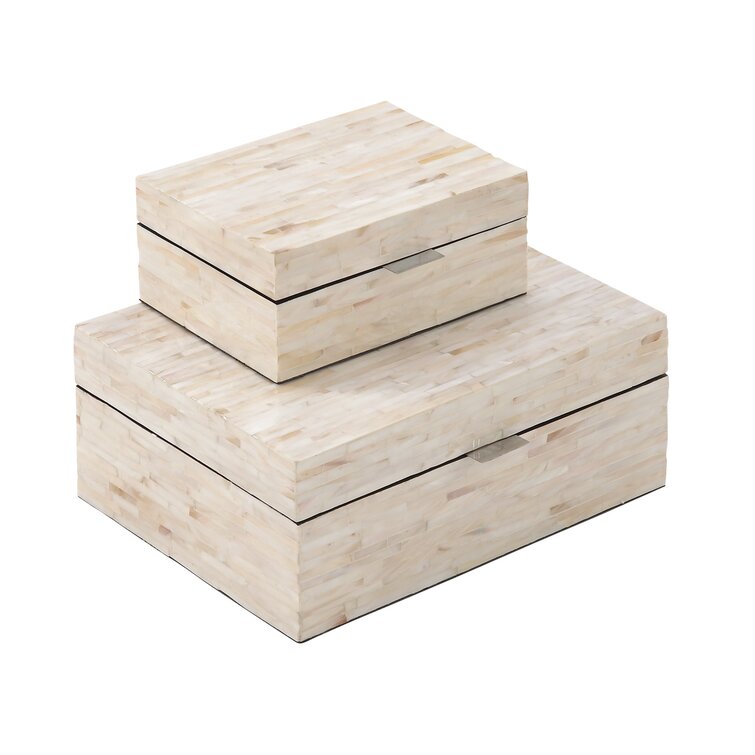 Keifer 2 Piece Cream Mother of Pearl Handmade Box with Hinged Lid Set. 12″. 8″W