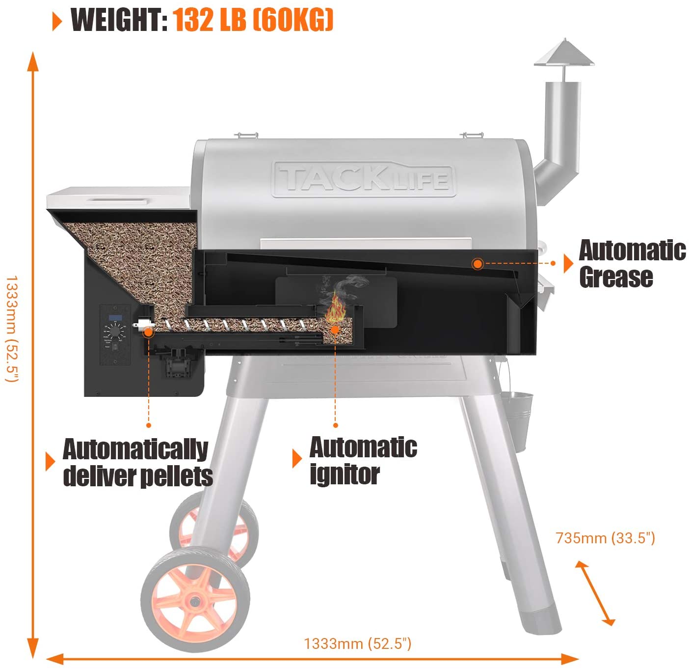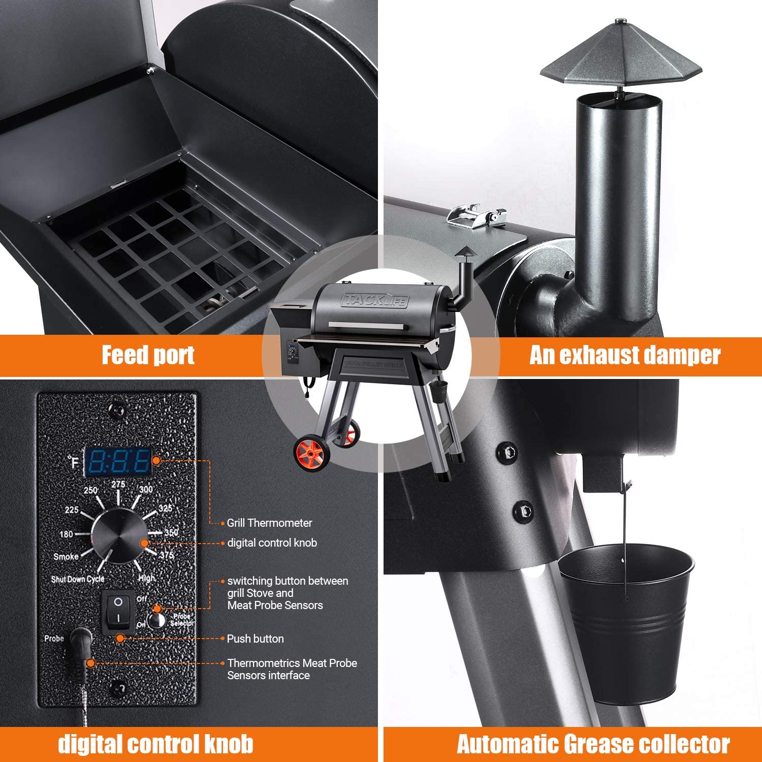 Tacklife 20000BTU Heat Ideal for Wood Pellet Grill and Smoker.8-in-1 BBQ Grill-TKGRILL01