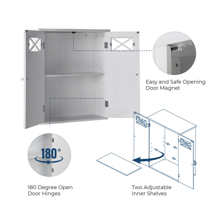 Woodley Removable Wooden Wall Cabinet with Cross Molding and 2 Doors
