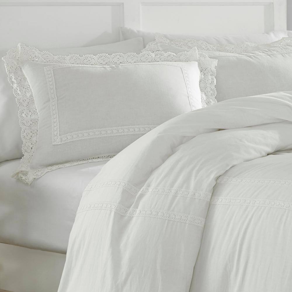 Laura Ashley Annabella 3-Piece White Solid Cotton King Comforter Set