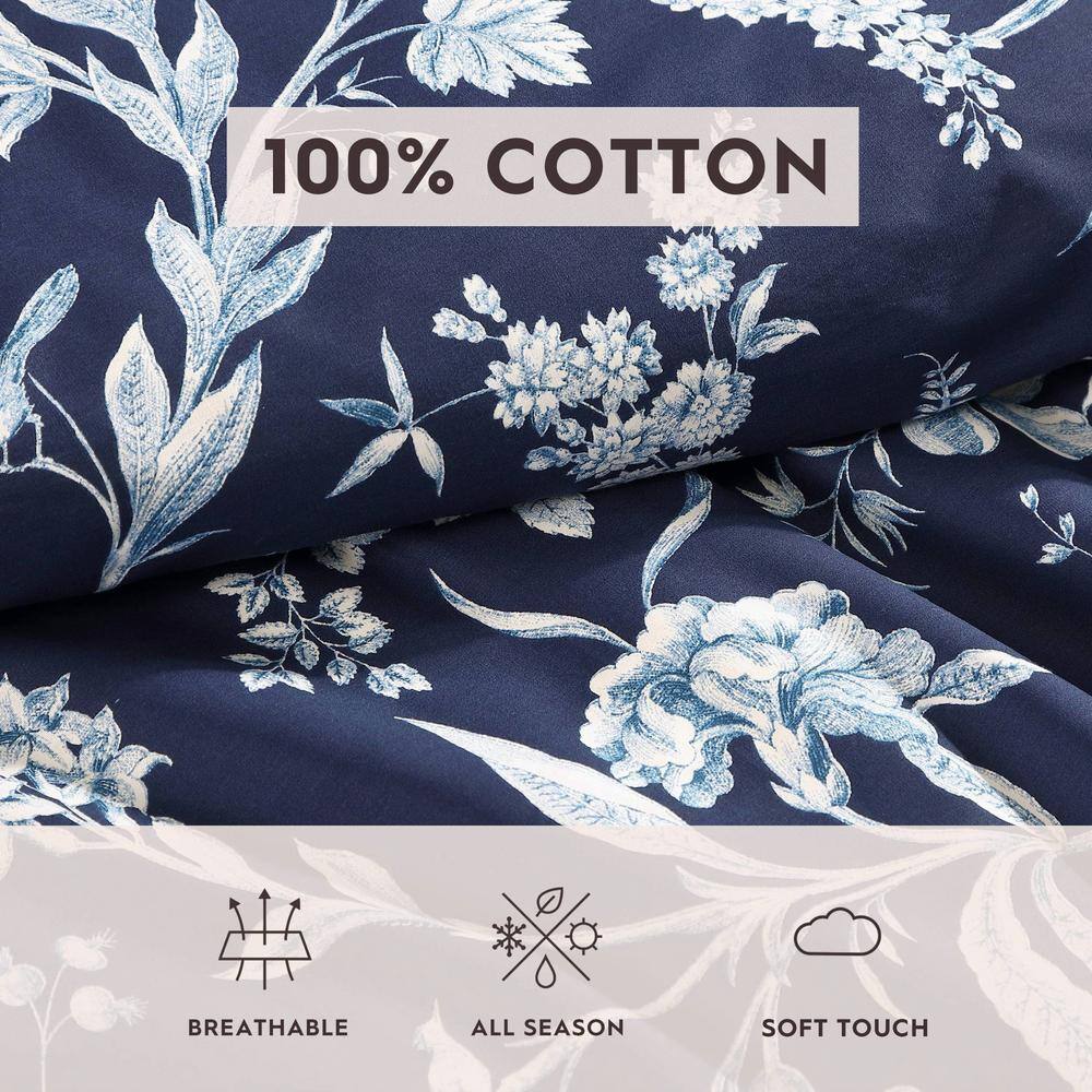 Laura Ashley Madelynn 7-Piece Blue Floral Cotton King Comforter Set