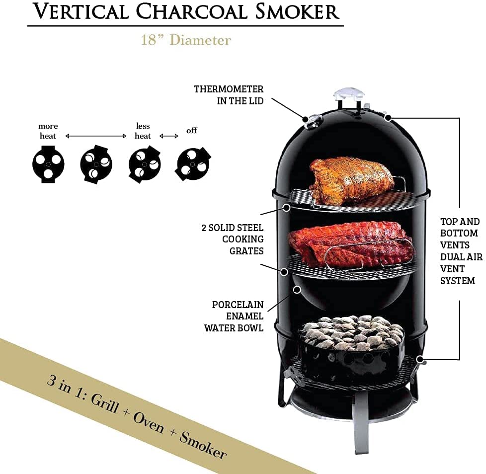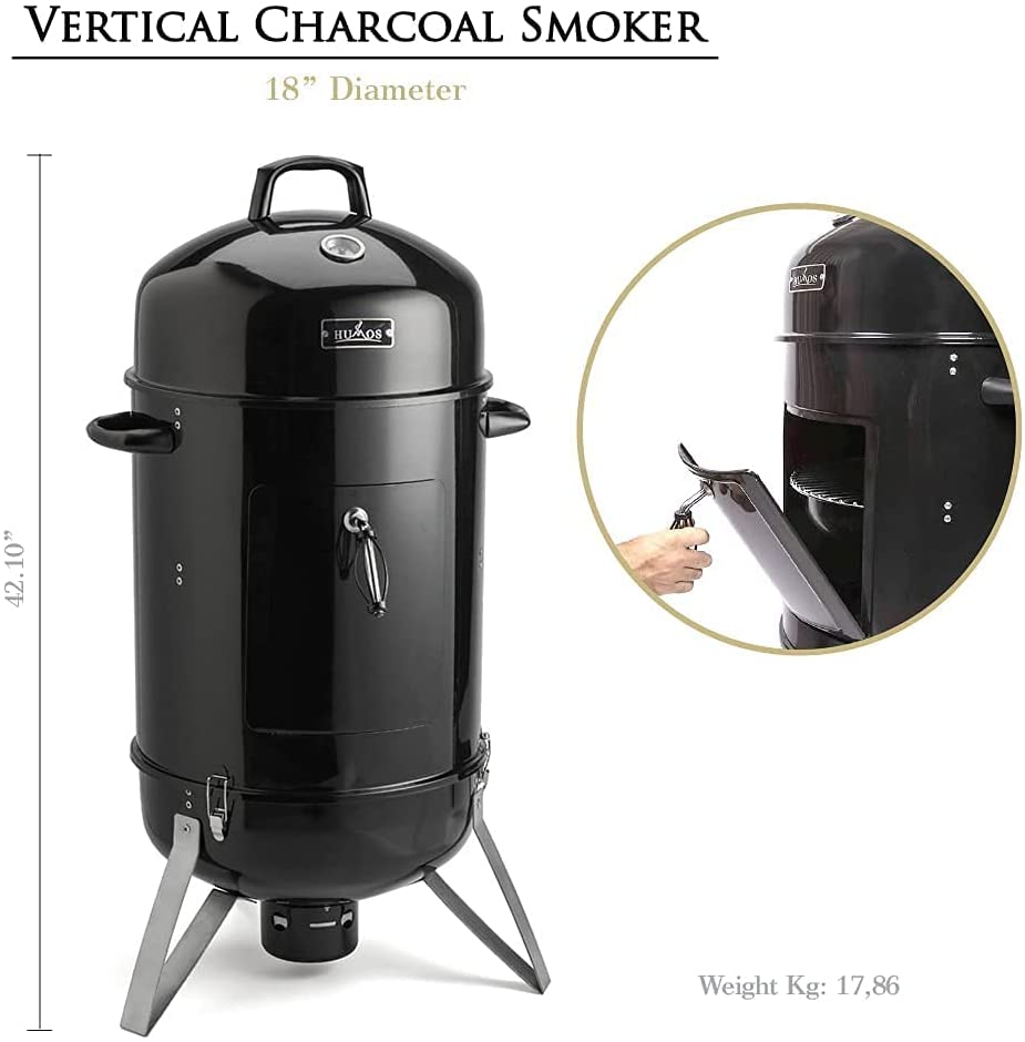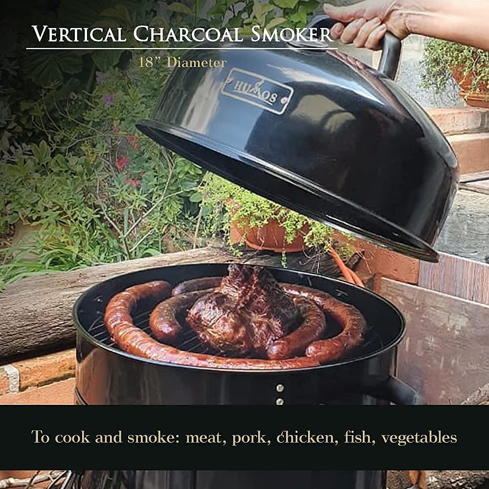 Humos Outdoor Vertical Charcoal Smoker 3 in 1: Oven + Smoker + Grill (18 inch)