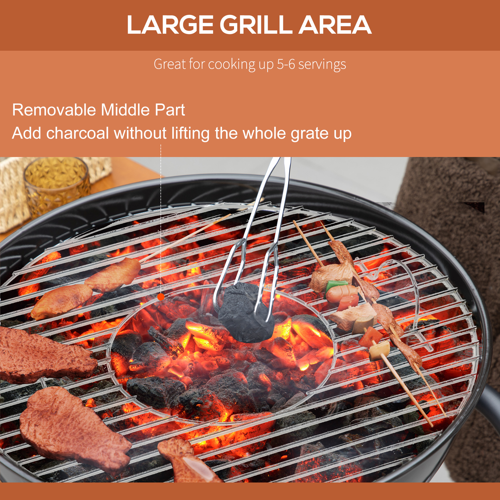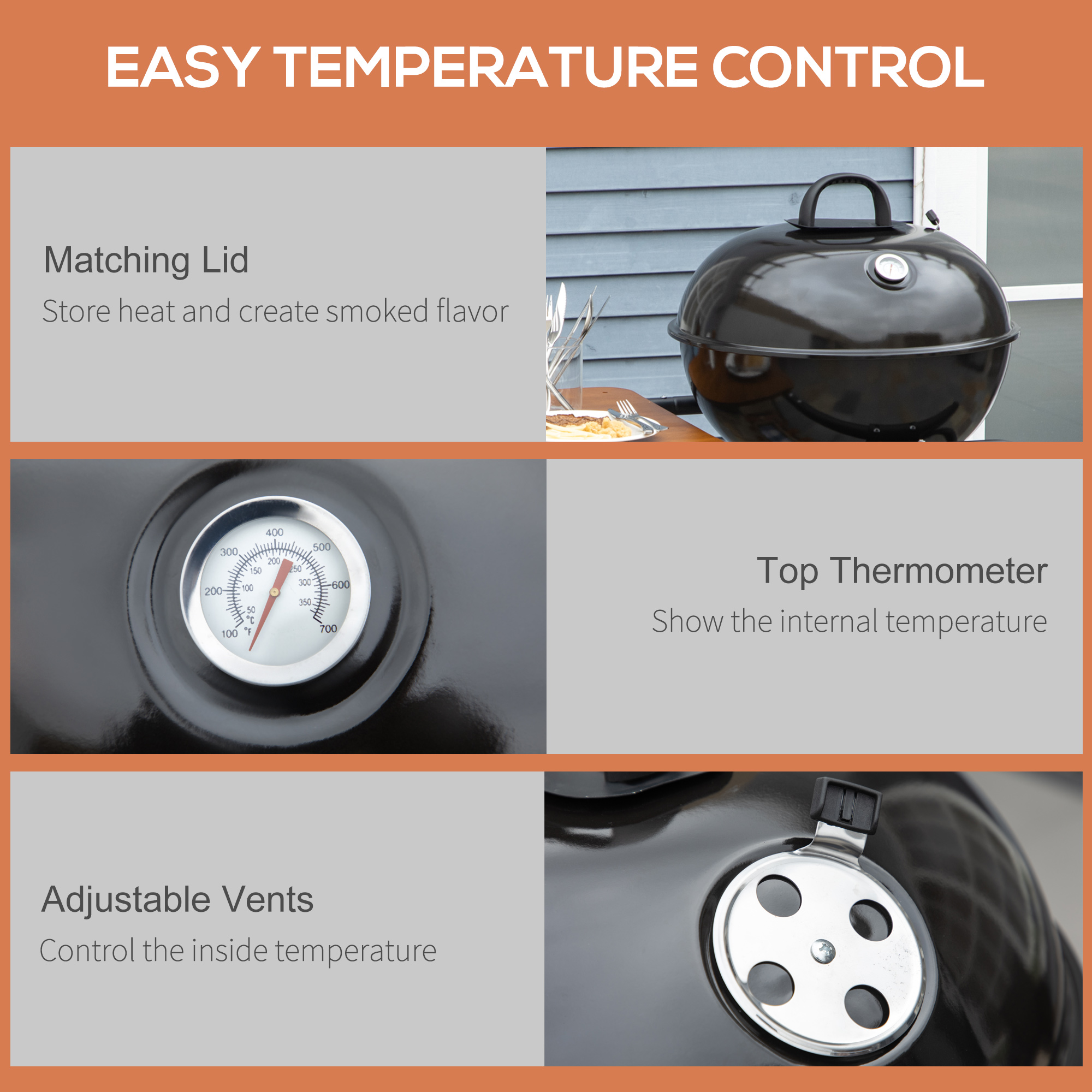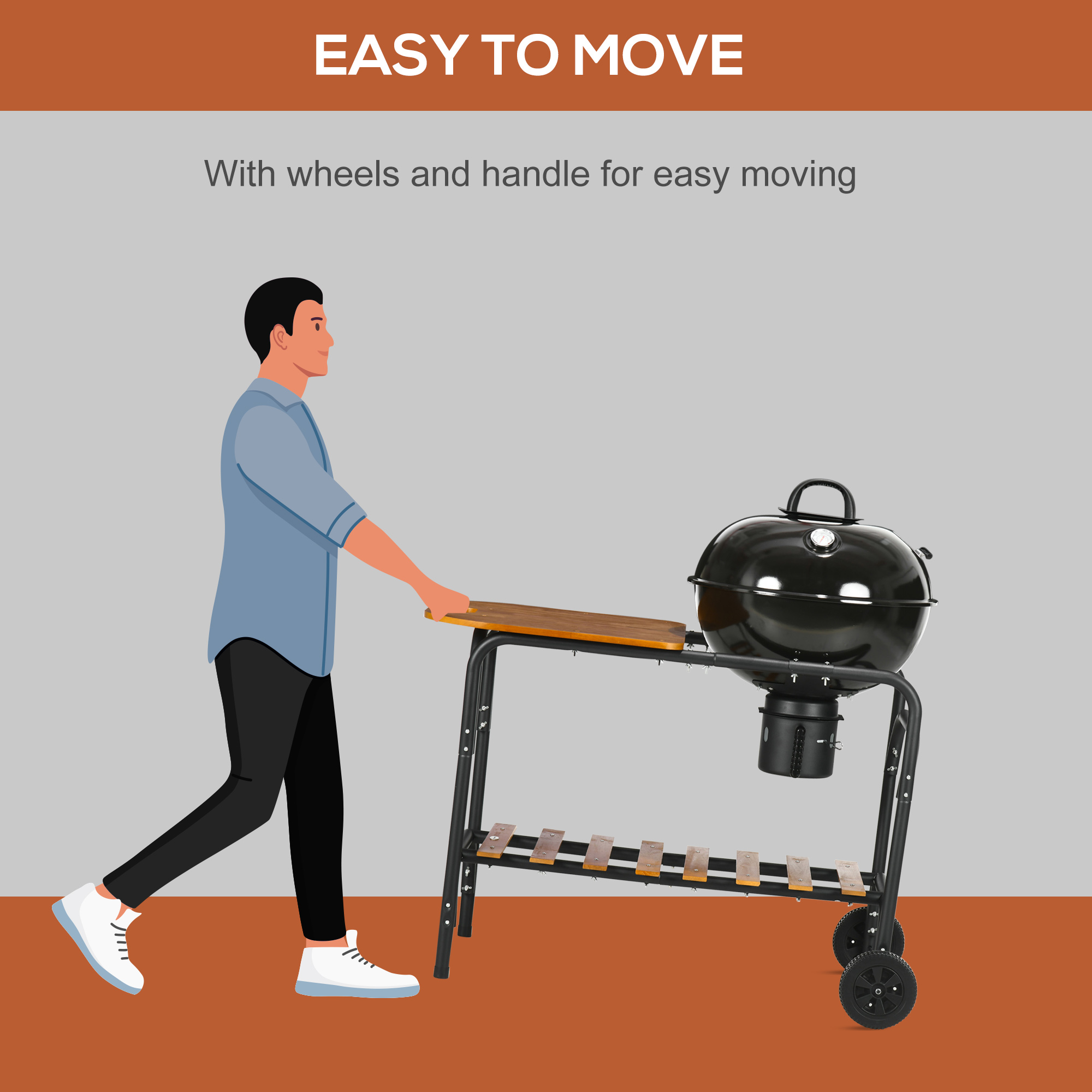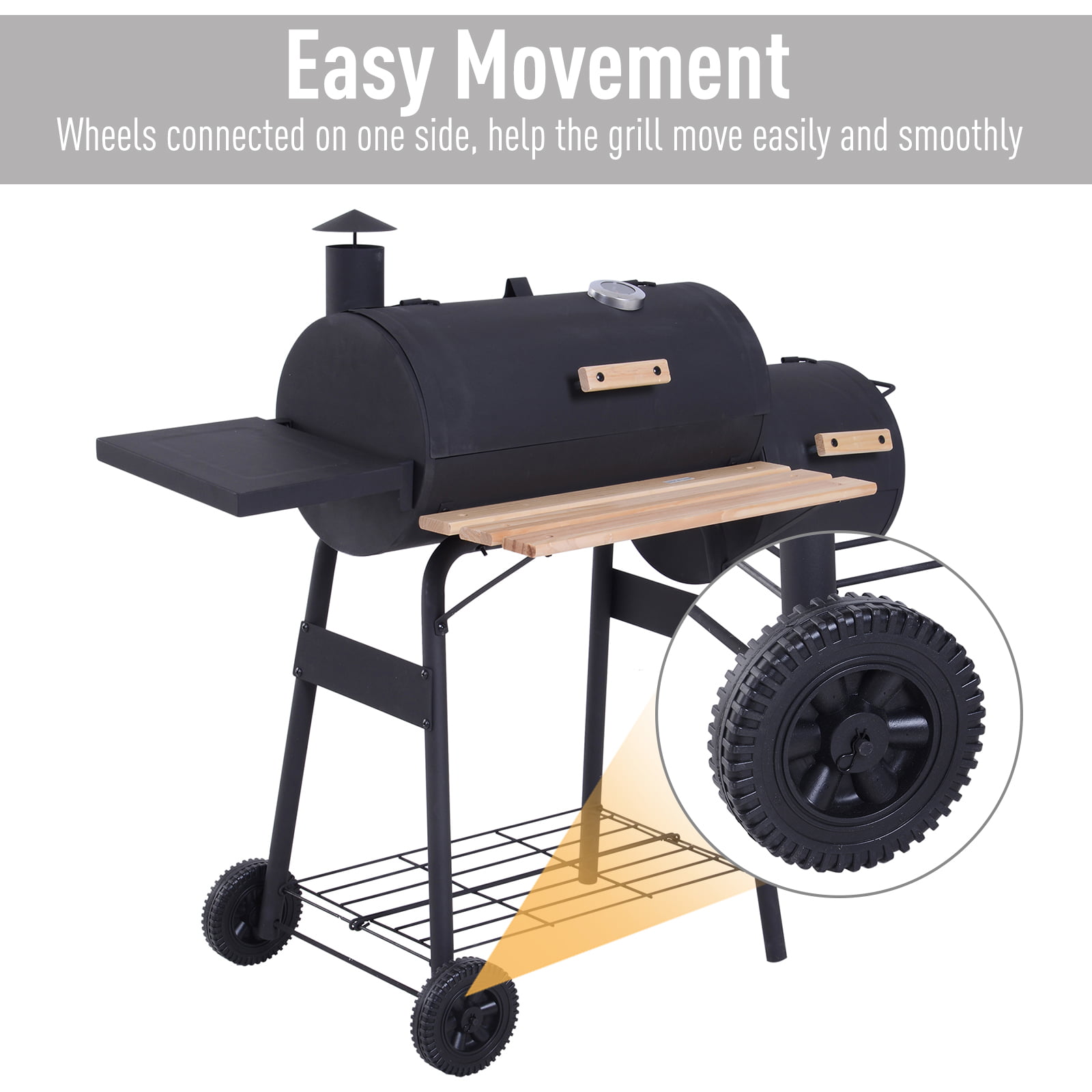 Outsunny Charcoal BBQ Grill on Wheels 21″ Barbecue Smoker W/ Table. Shelf