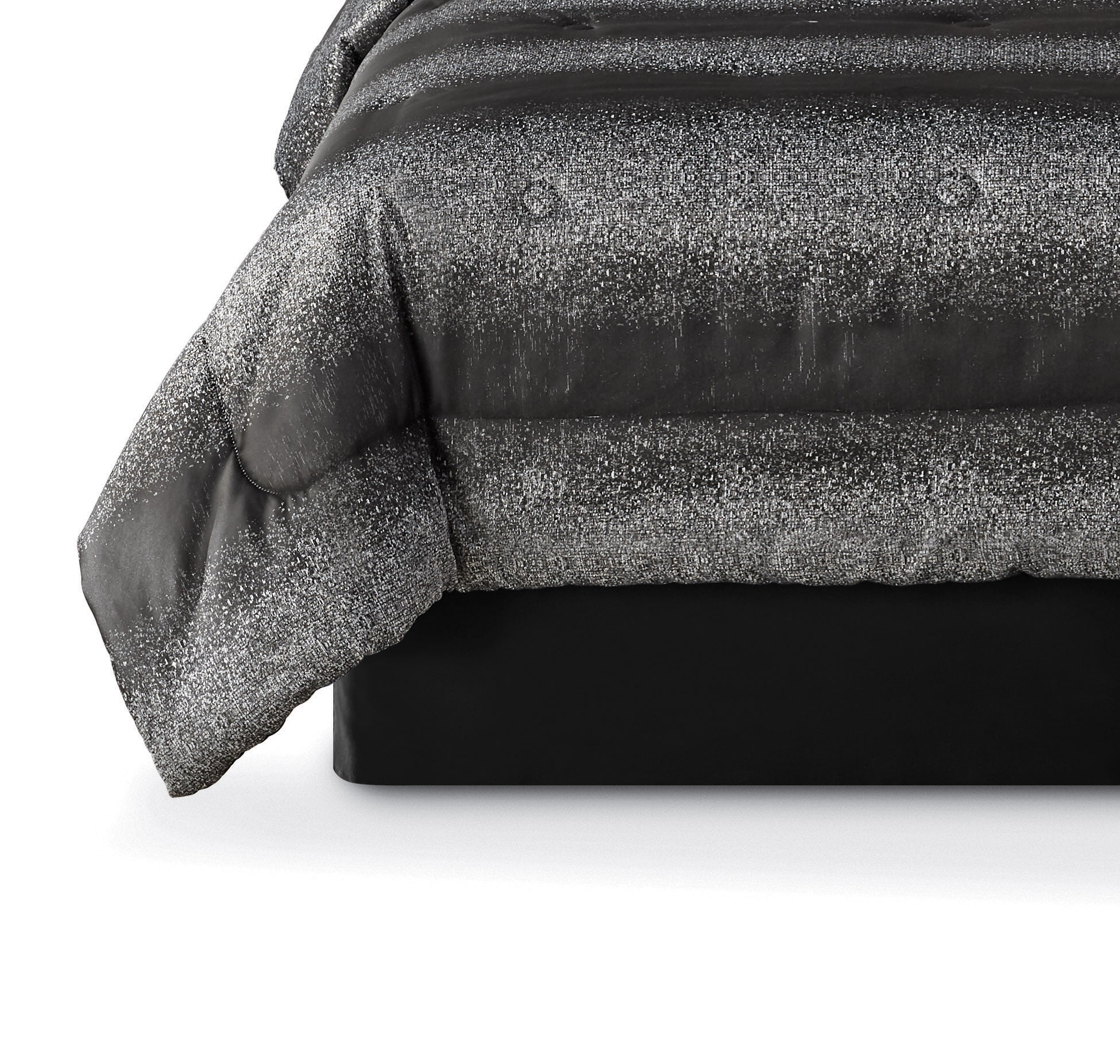 Mainstays 7-Piece Metallic Stripe Jacquard Comforter Set. Black and Silver. Full/Queen