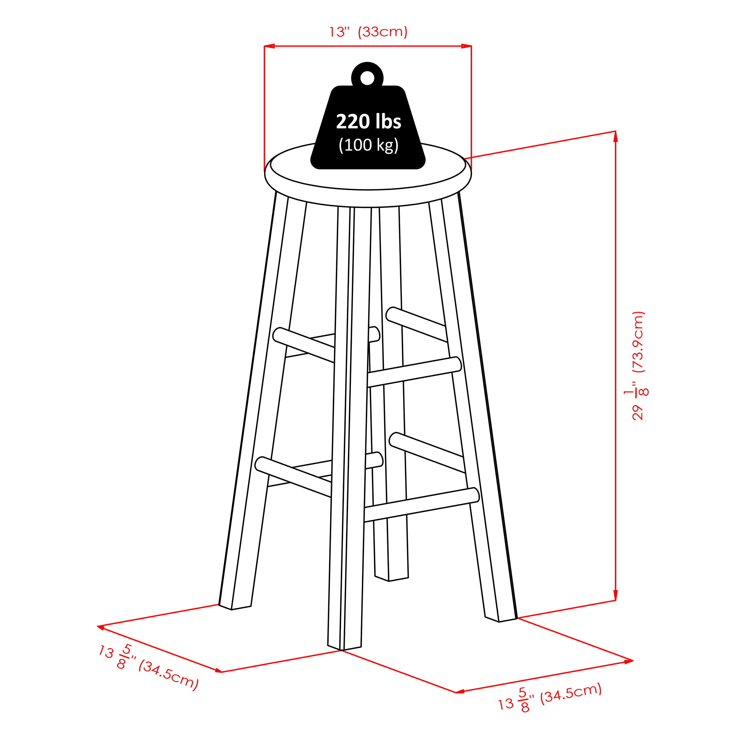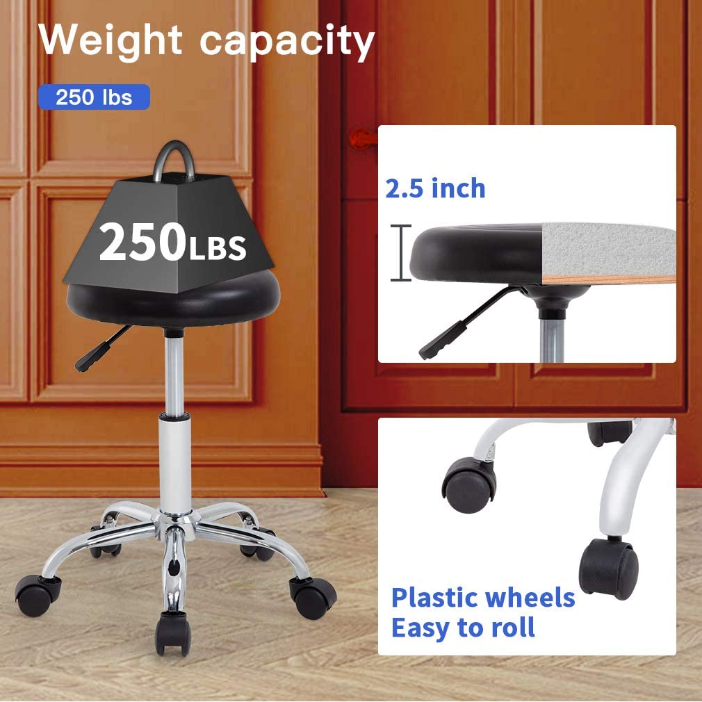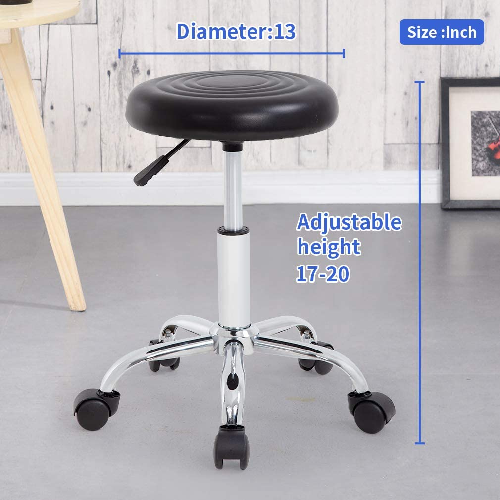 Furinno Adjustable Round Armless Rolling Spa Chair with PU Cushion. 12 Inch. Black