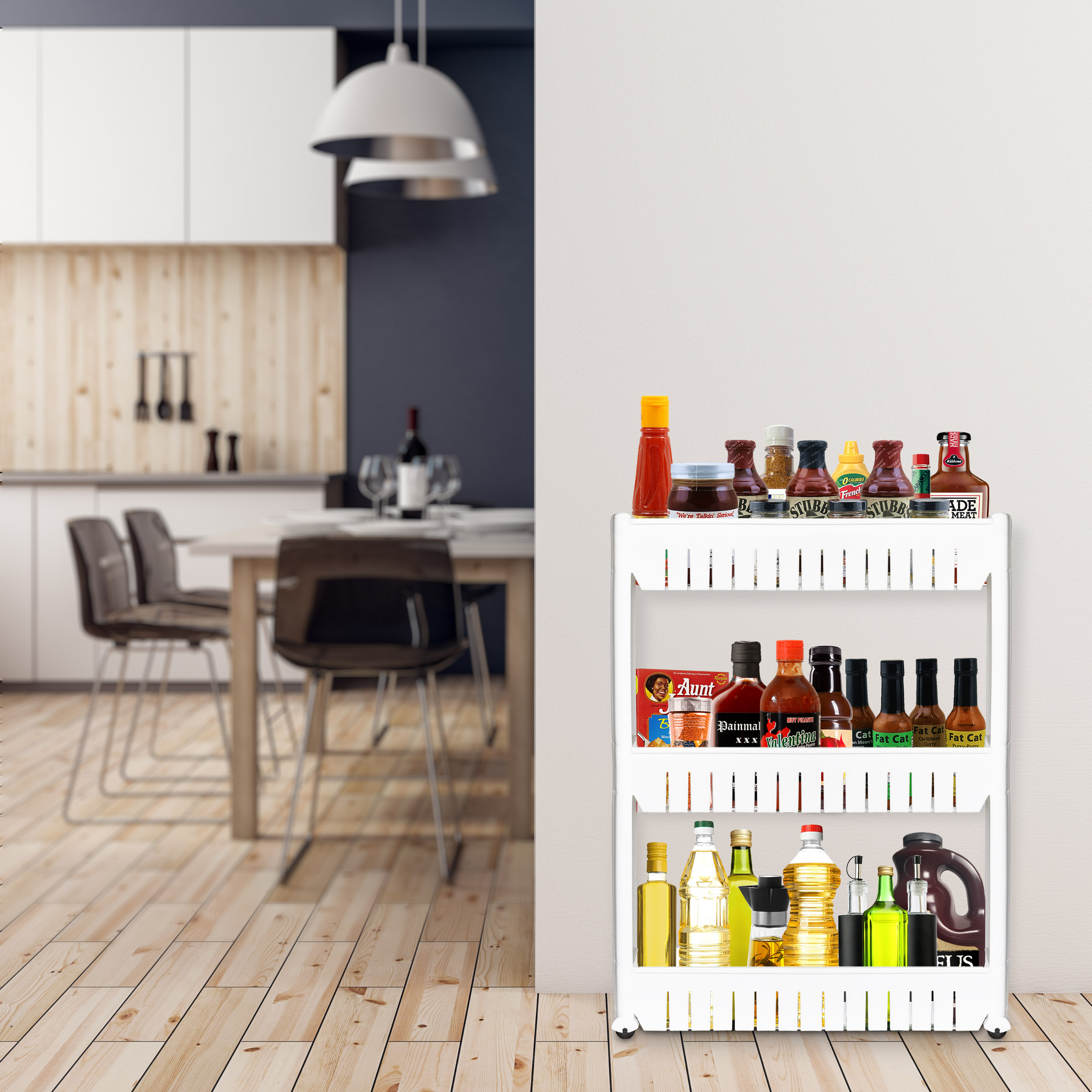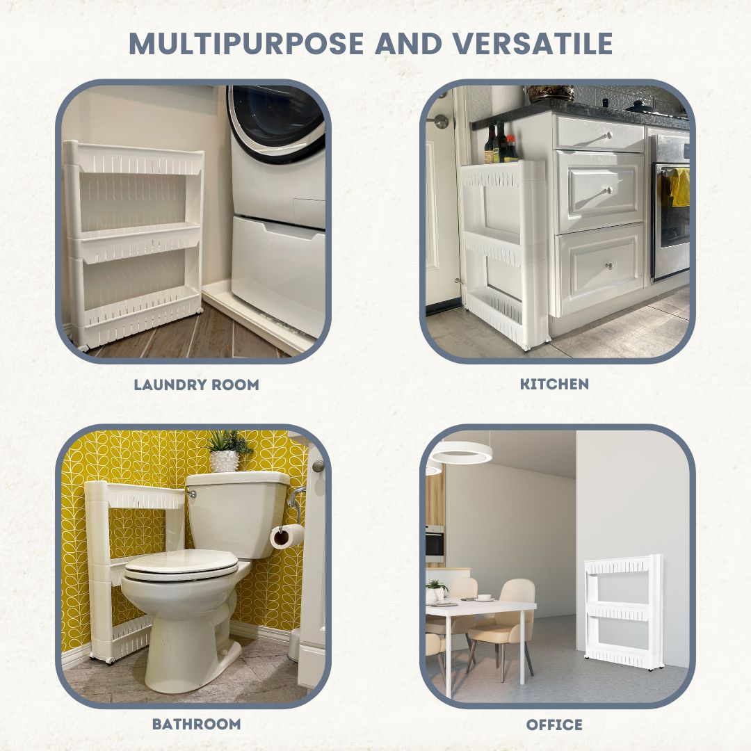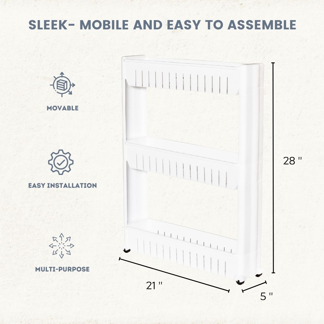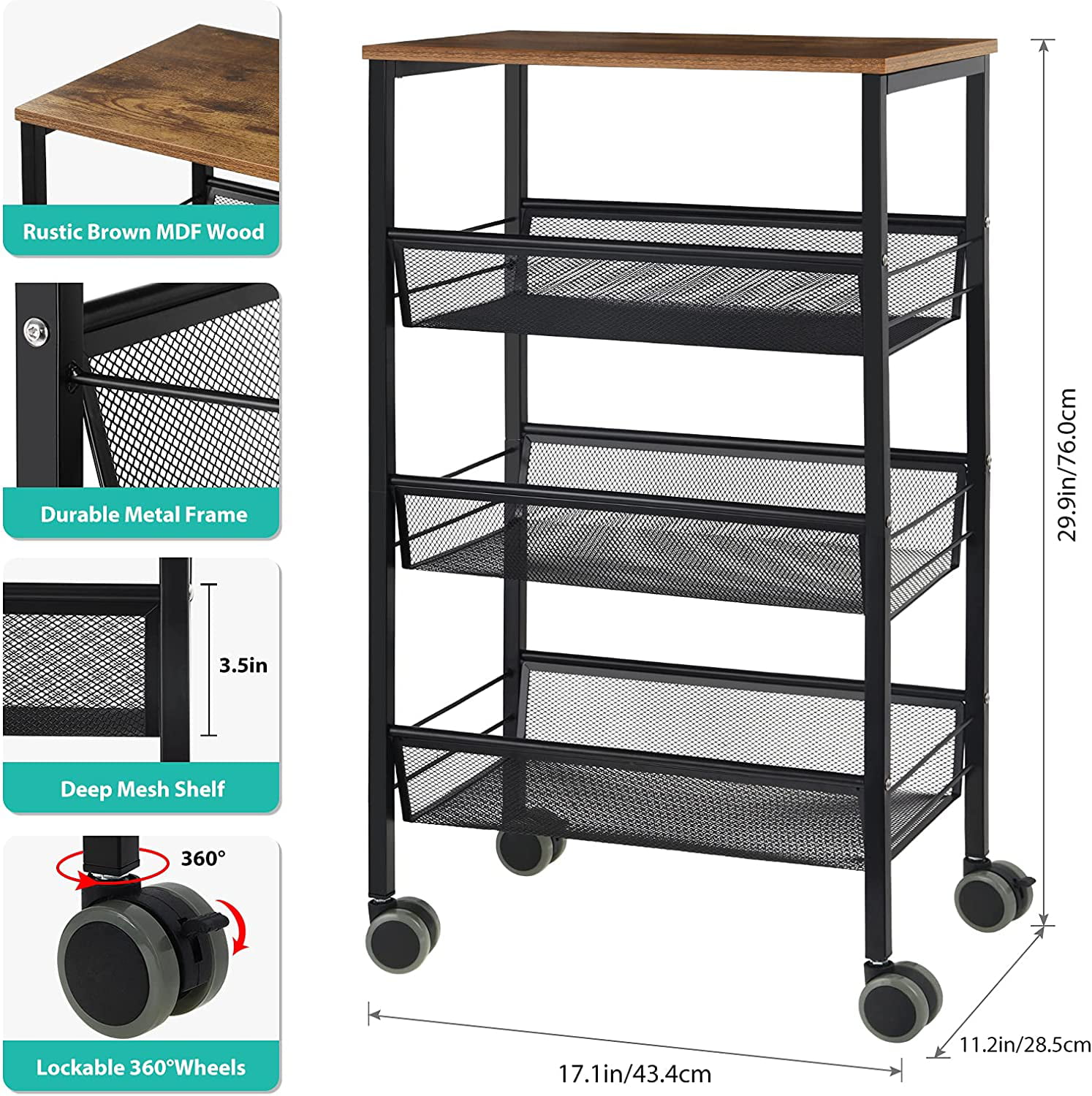 Kitchen Utility Rolling Cart. Storage Organizer with Wheels. 4-Ply Farmhouse Service Cart Stand (Black + Fire Color)