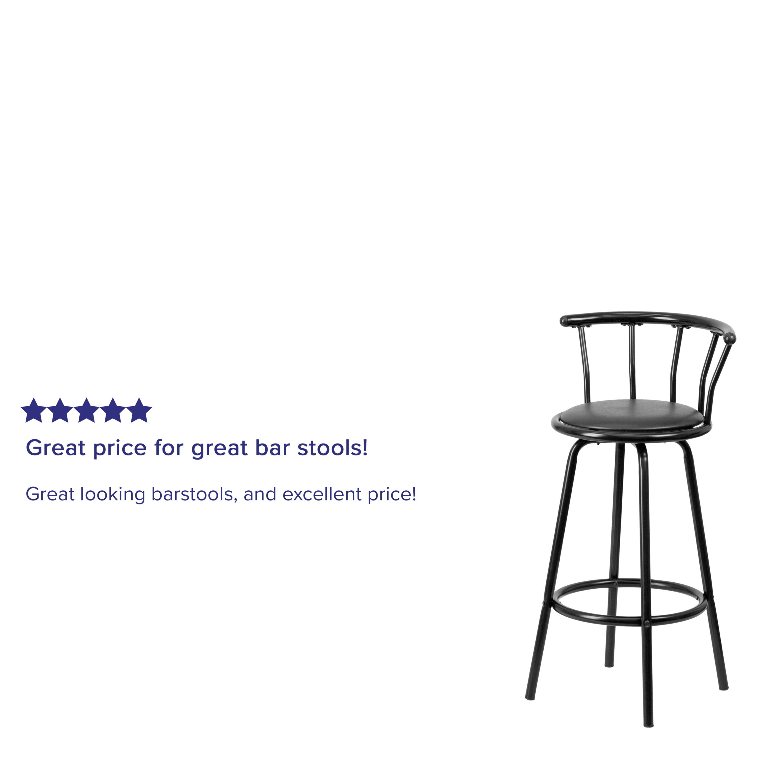 Flash Furniture Charla Crown Back Black Metal Barstool with Black Vinyl Swivel Seat