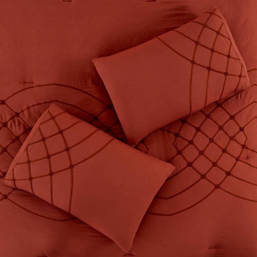 Benjara Alice 5-Piece Red Stitched Microfiber Queen Comforter Set