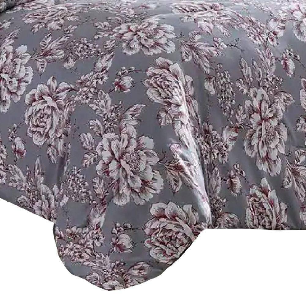 Benjara Tyler 8- Piece Gray Floral Print Microfiber Queen Bed Comforter Set