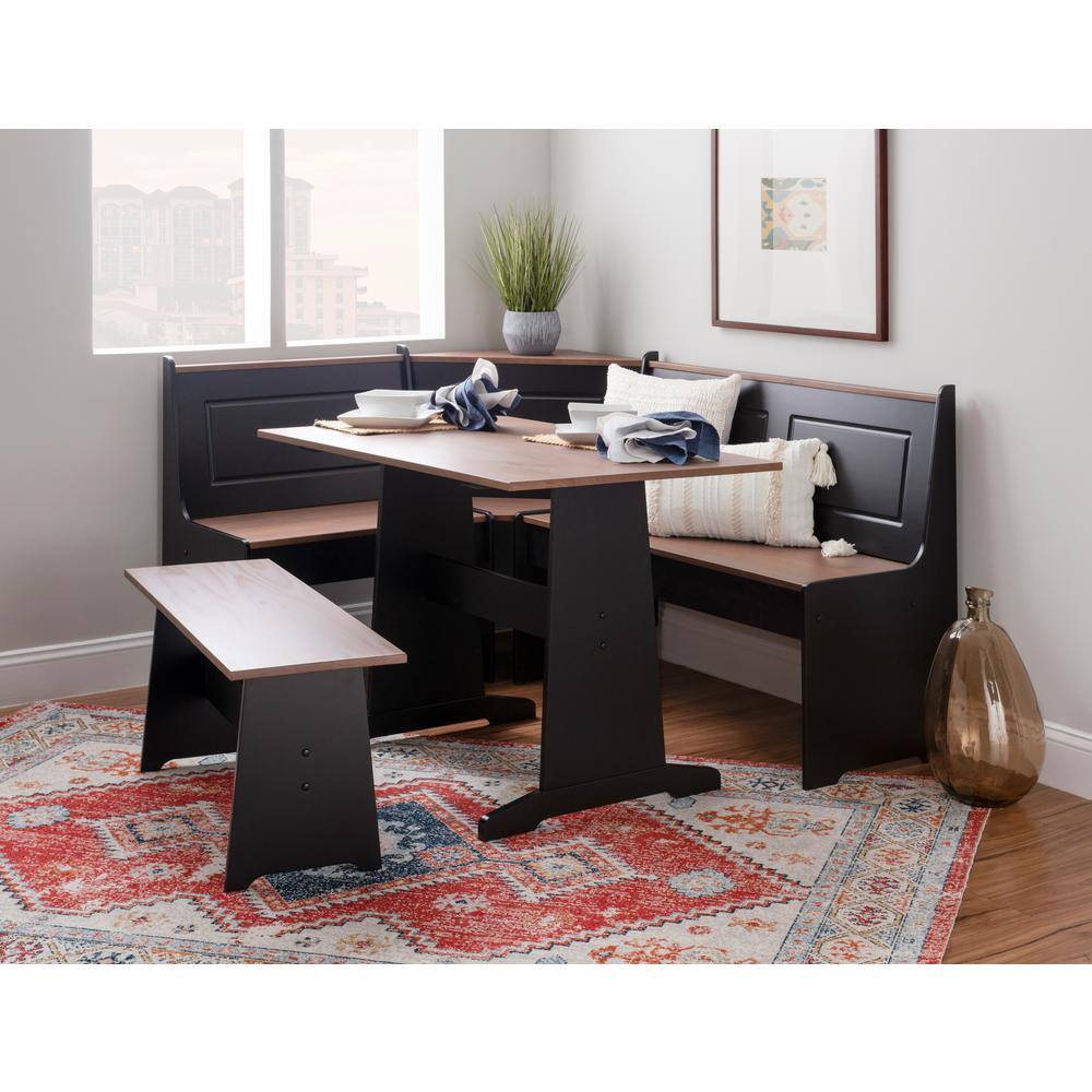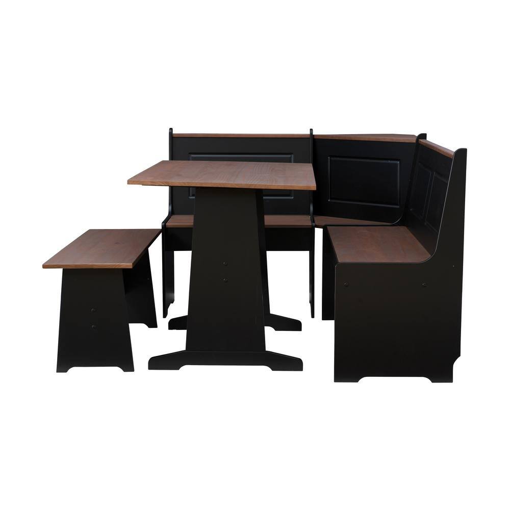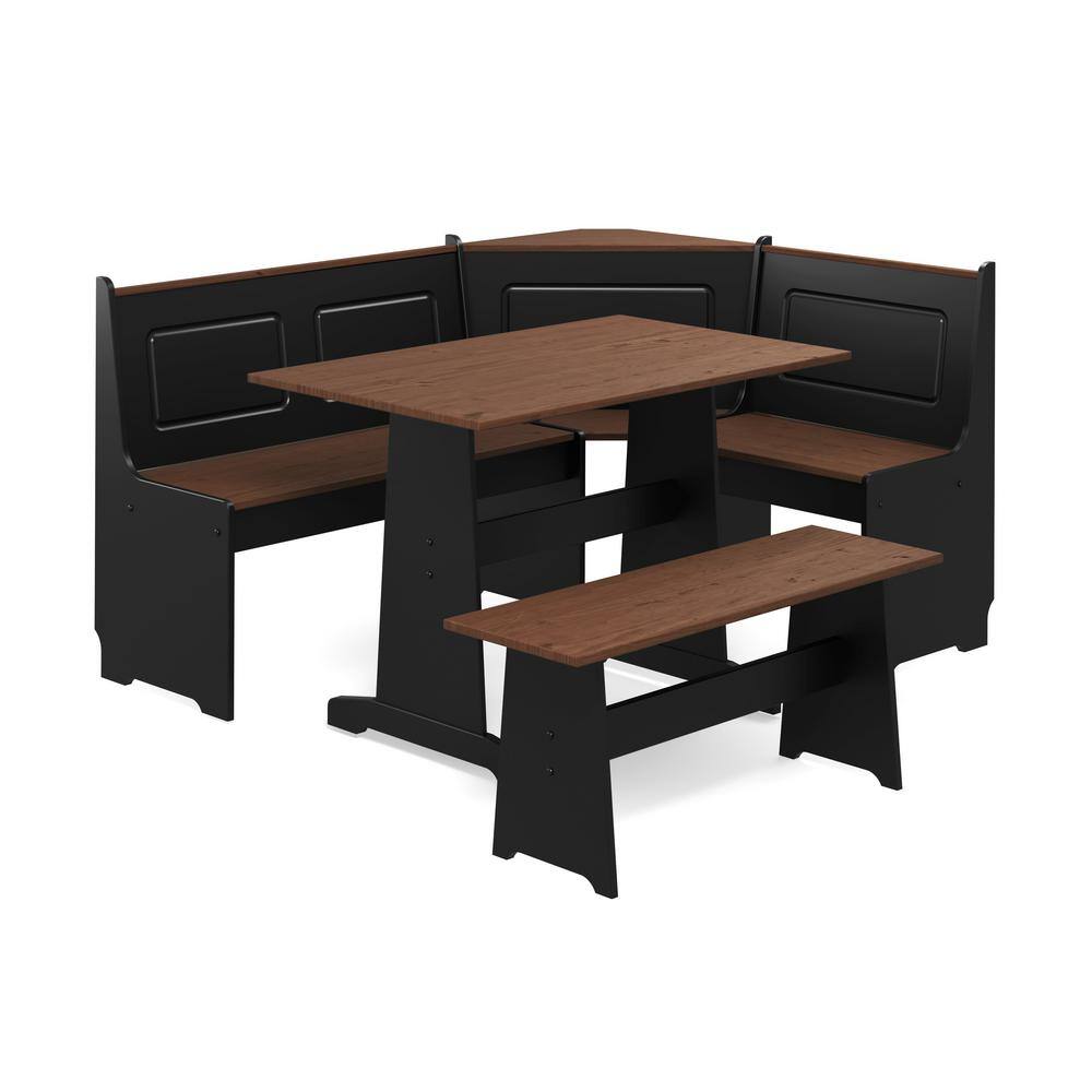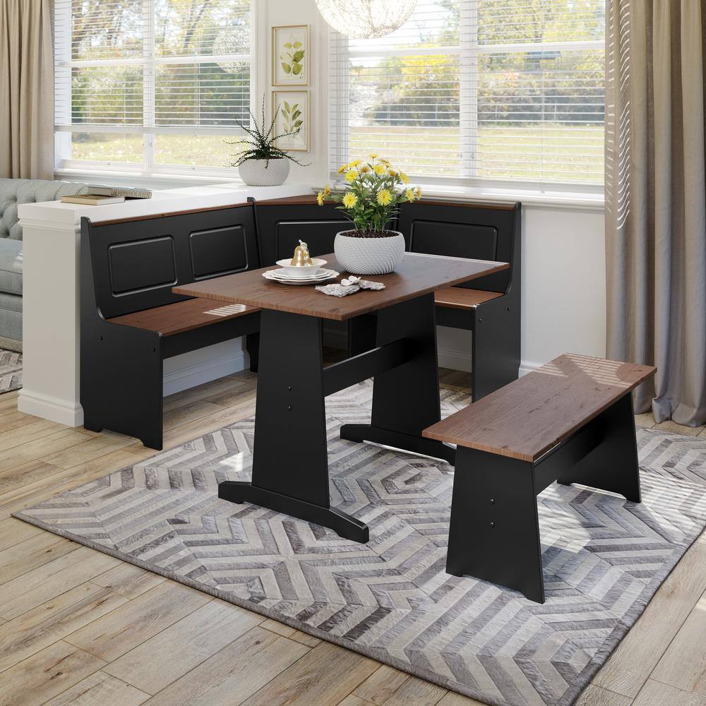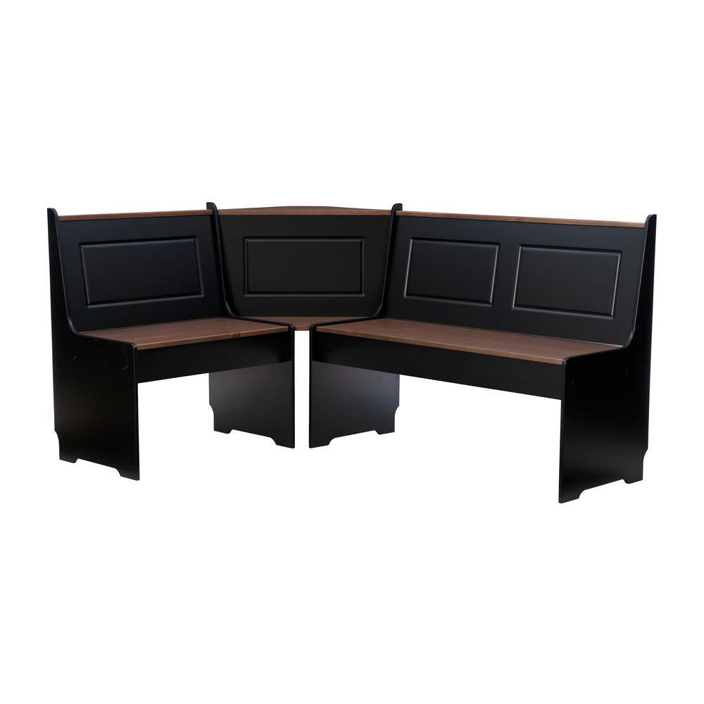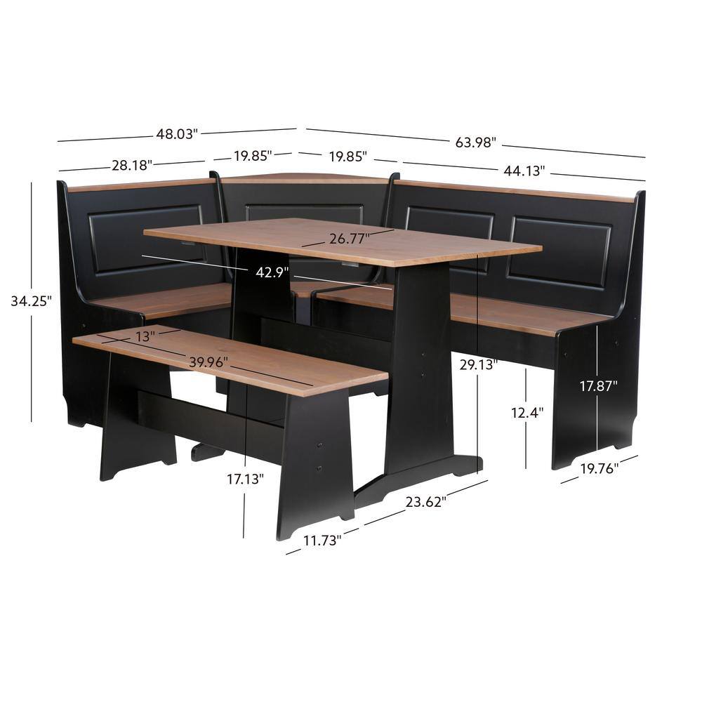 Linon Home Decor Ardmore 3 Piece Black and Pecan Breakfast Nook Dining Set