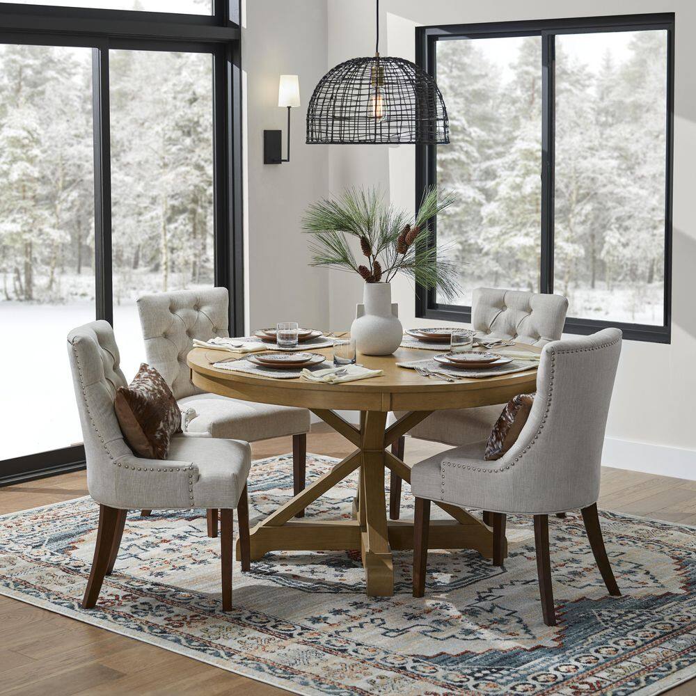 StyleWell Bakerford Biscuit Beige Upholstered Dining Chair with Tufted Back (Set of 2)