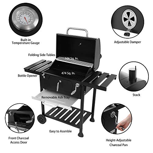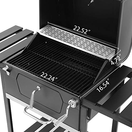 Royal Gourmet CD1824EN 24 Charcoal Grill Outdoor Smoker with Side Tables Backyard Griller Party BBQ Picnic Patio Cooking. Black