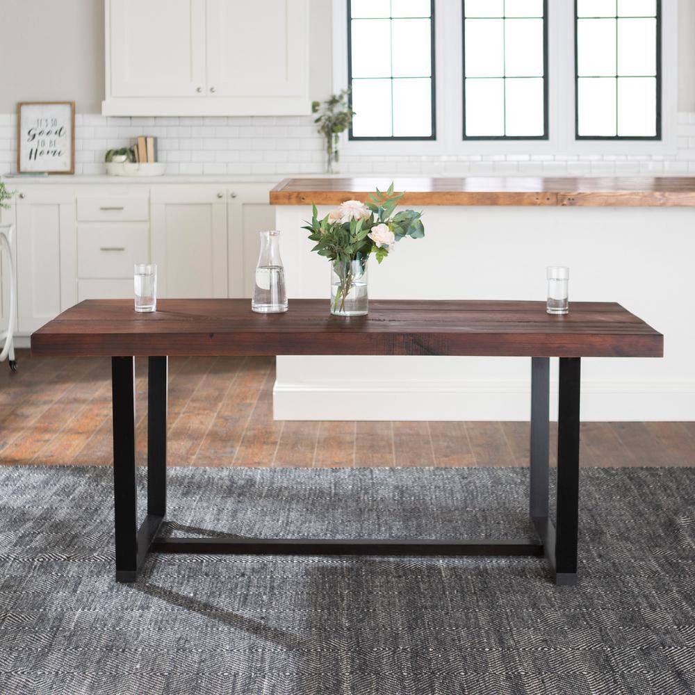 Walker Edison Furniture Company Durango 72 in. Mahogany Rustic Urban Industrial Farmhouse Distressed Solid Wood Dining Table