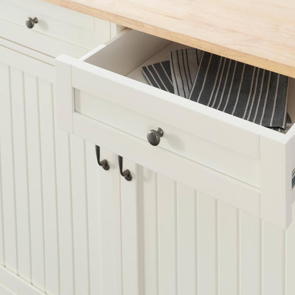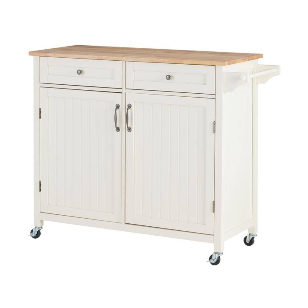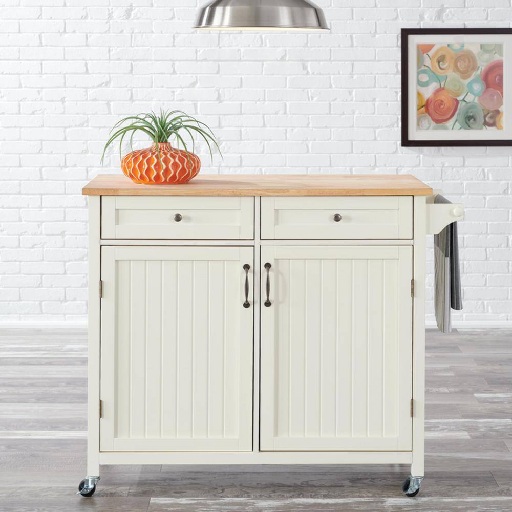 StyleWell Bainport Ivory with Butcher Block Top Wooden Rolling Kitchen Cart and Double-Drawer Storage (44″ W)