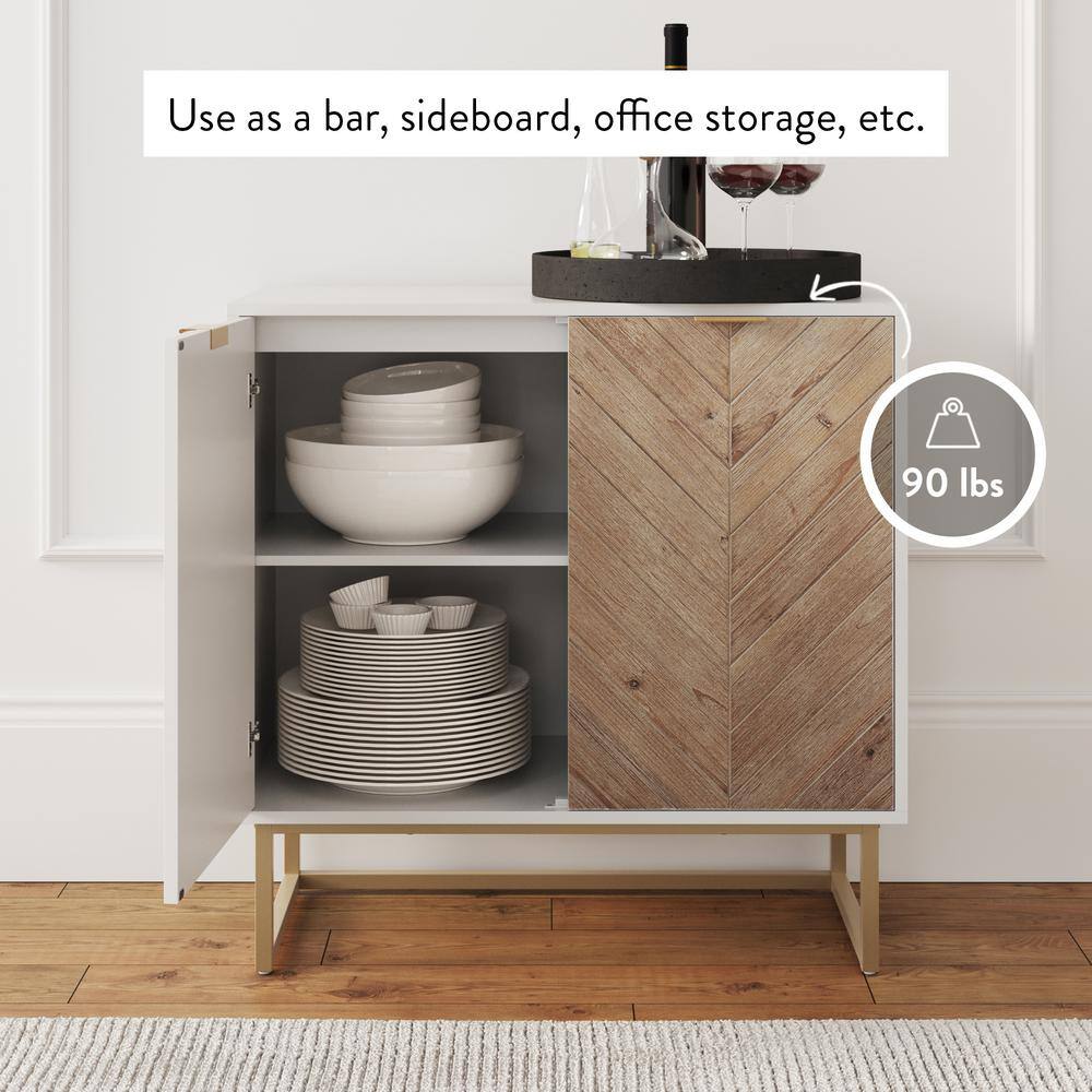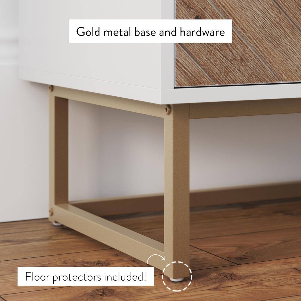 Nathan James Enloe White Frame with Brown Rustic Doors and Gold Base Free Standing Modern Storage Cabinet for Entryway or Living Room