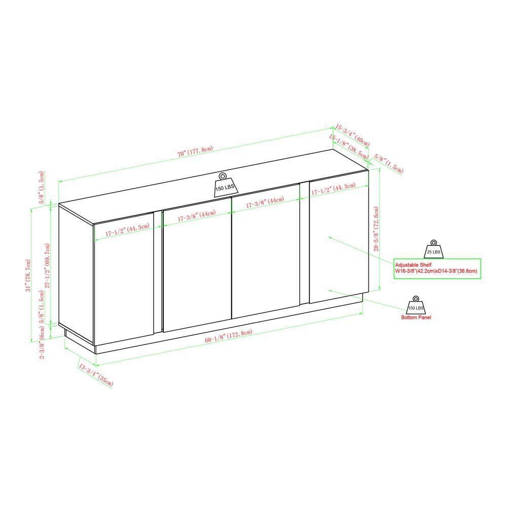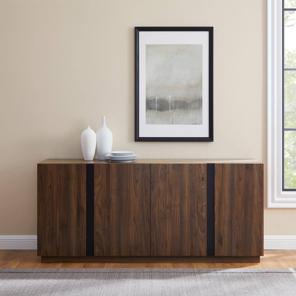 Welwick Designs Dark Walnut Wood and Metal Accent Modern 4-Door Sideboard