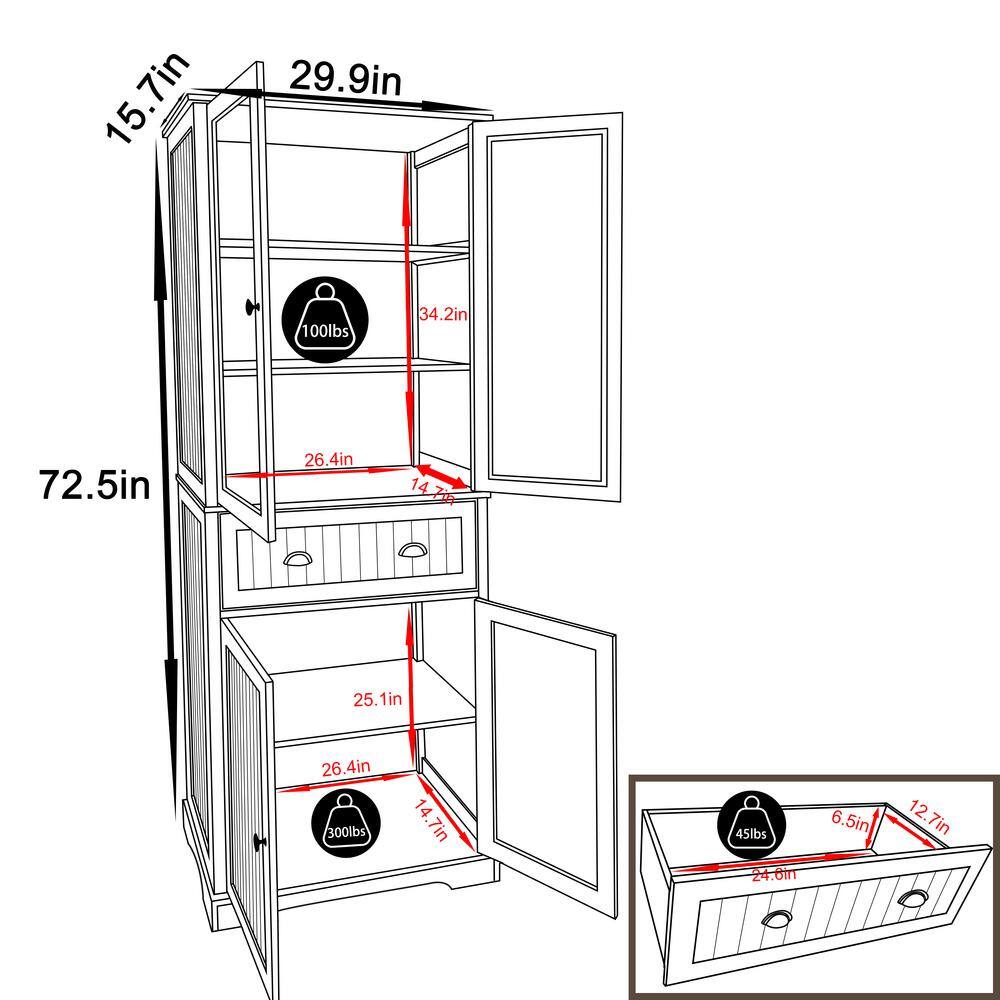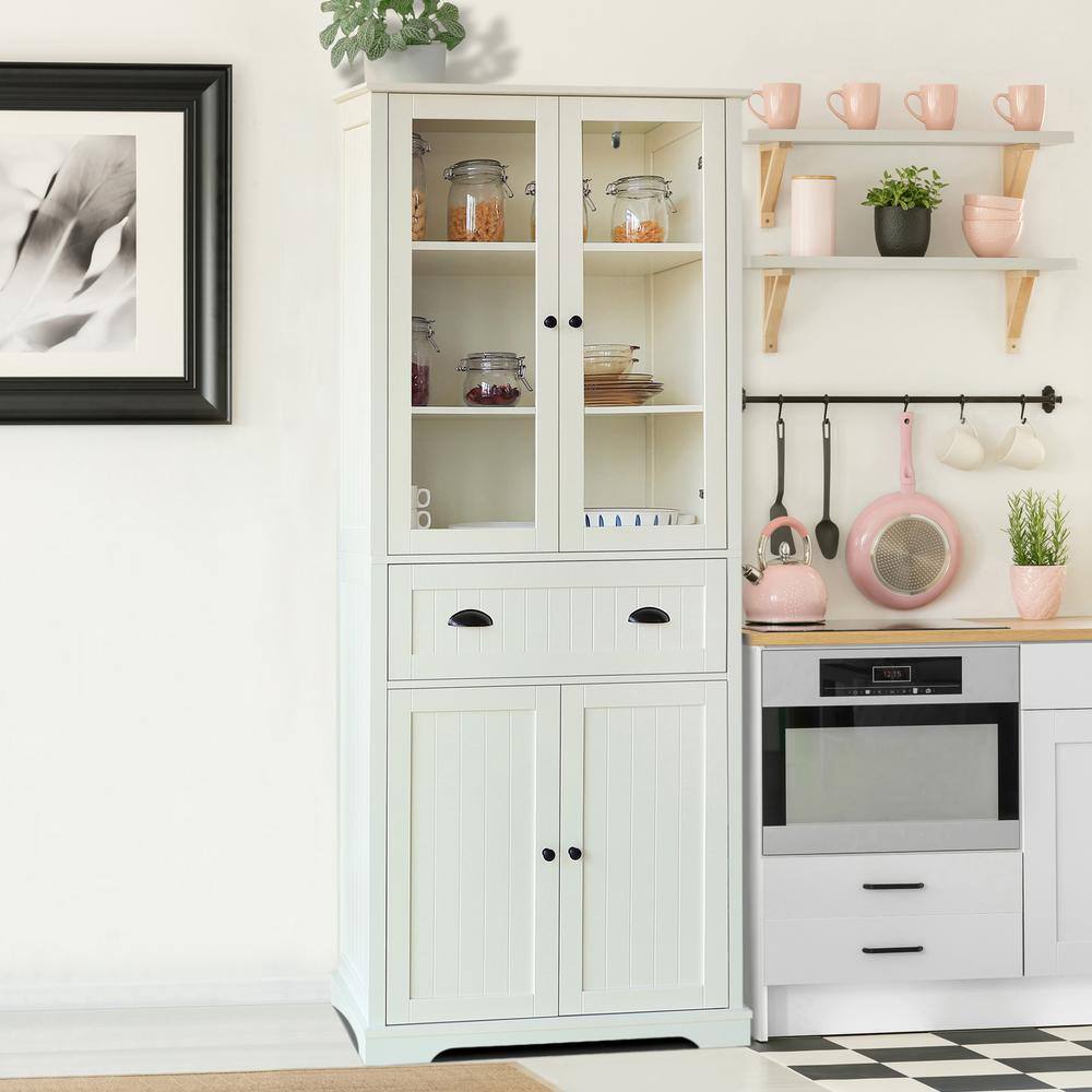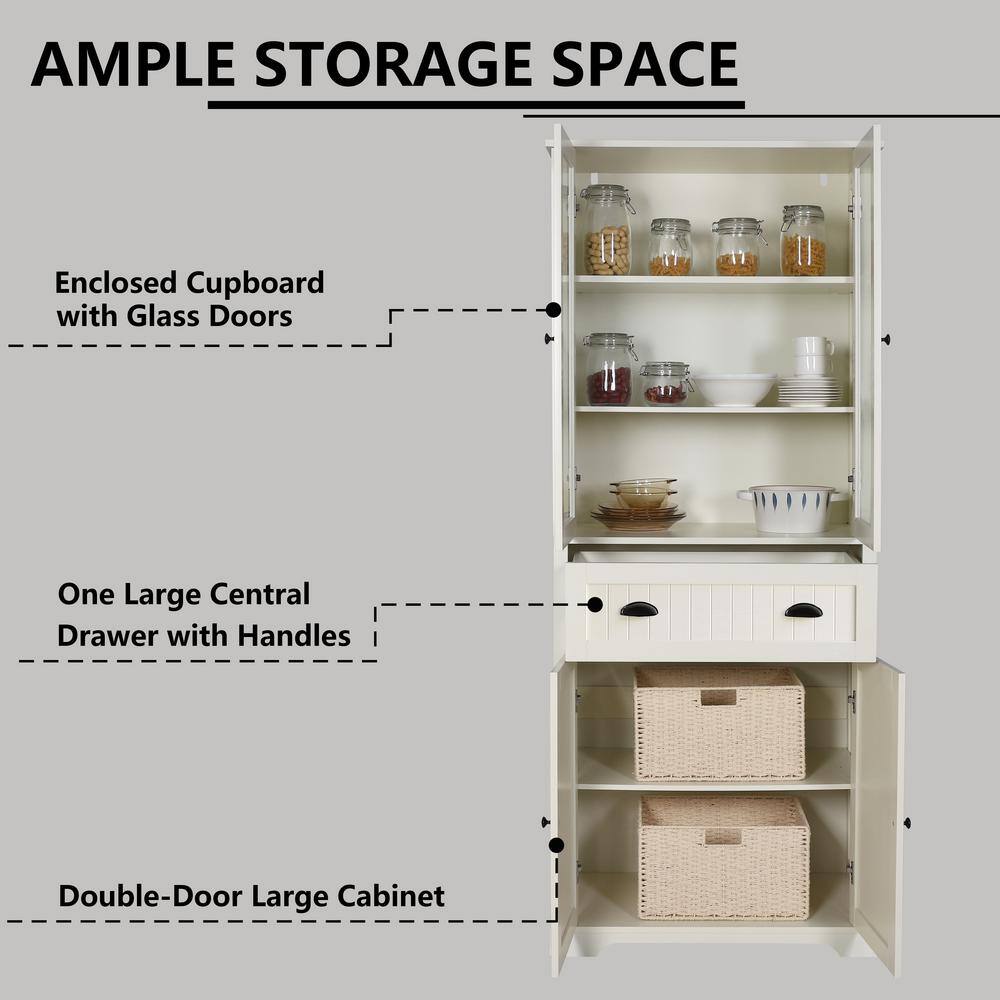 VEIKOUS 72 in. H Off-White Kitchen Storage Pantry Cabinet Closet with Doors and Adjustable Shelves