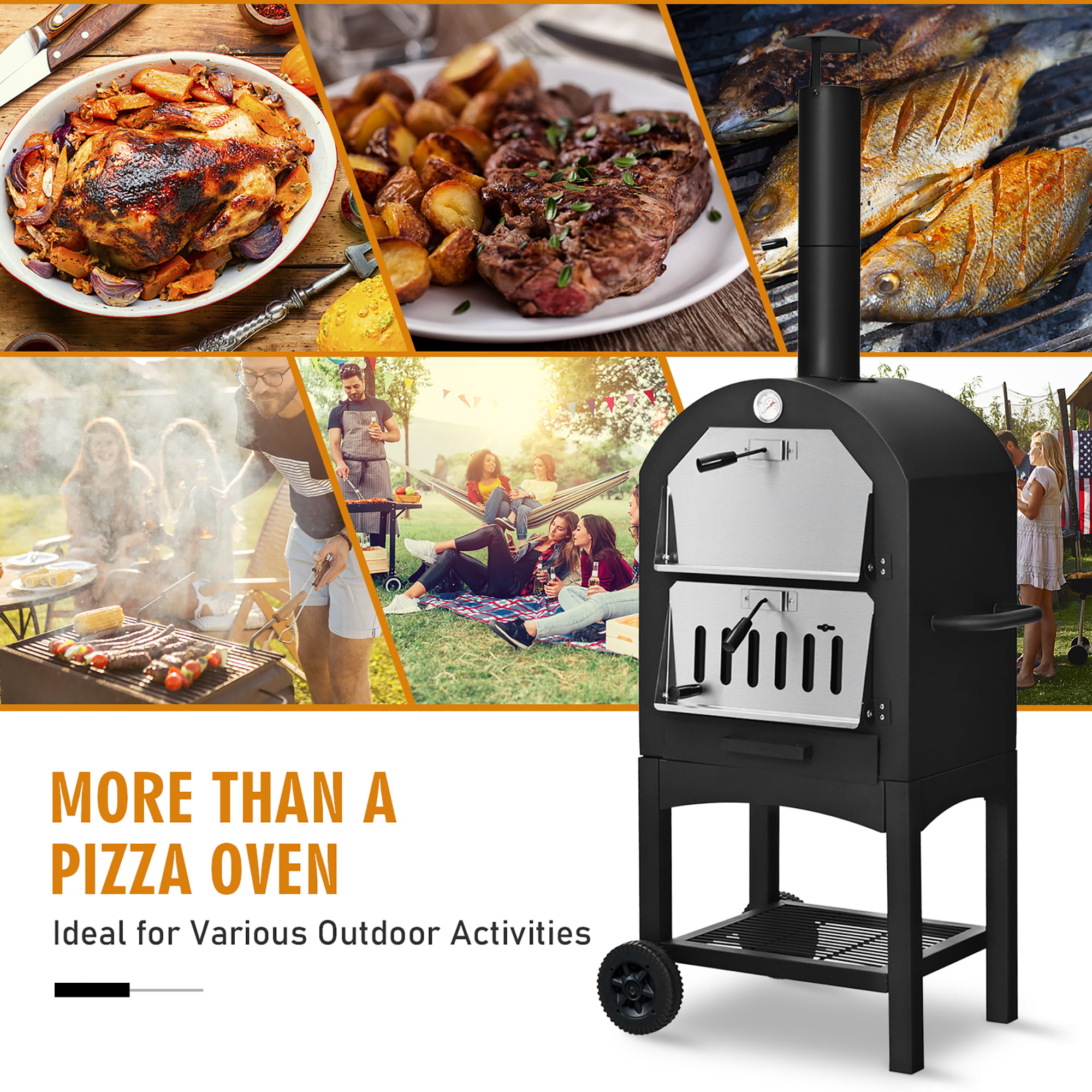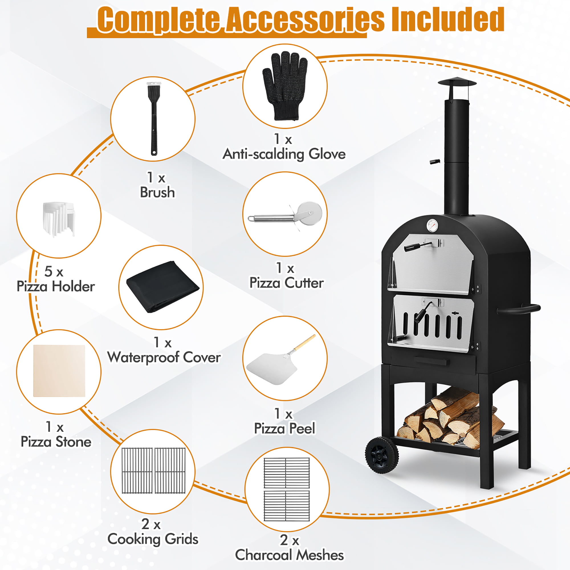 Costway Outdoor Pizza Oven Wood Fire Pizza Maker Grill w/ Pizza Stone & Waterproof Cover