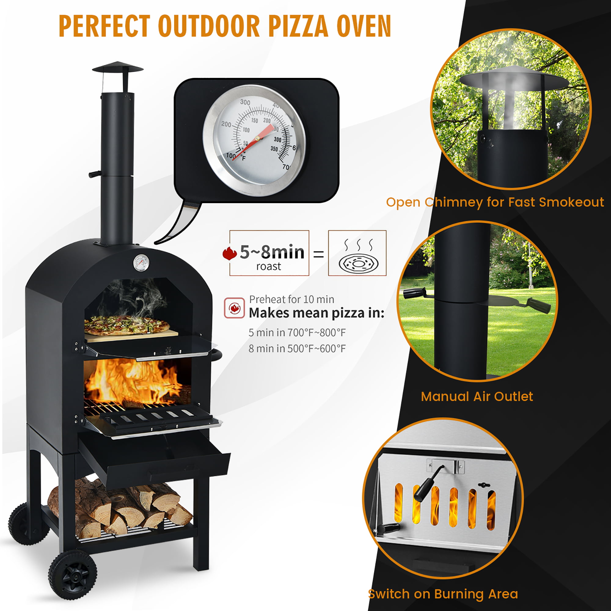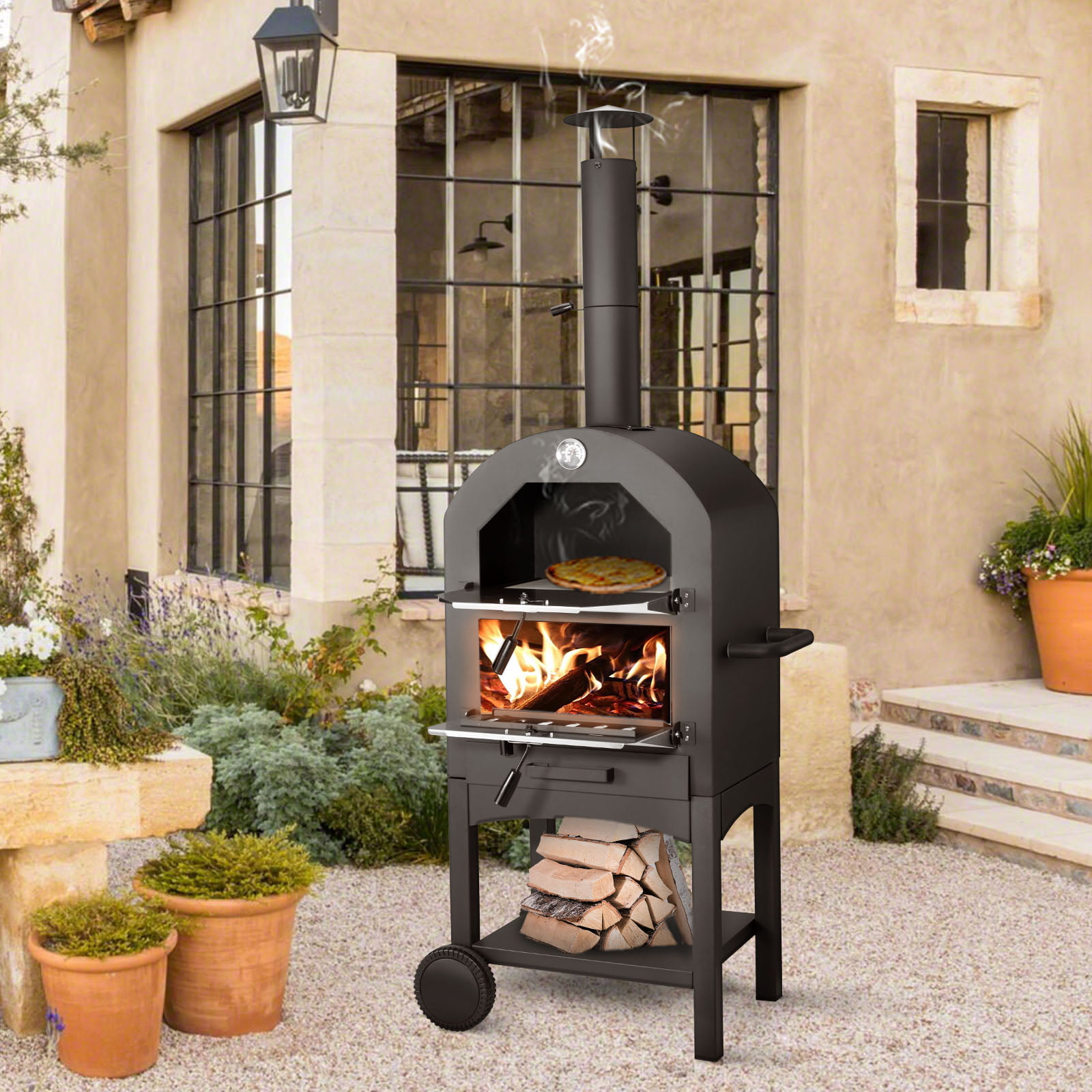 Danrelax Outdoor Pizza Oven Wood Fire with Waterproof Cover & Pizza Stone