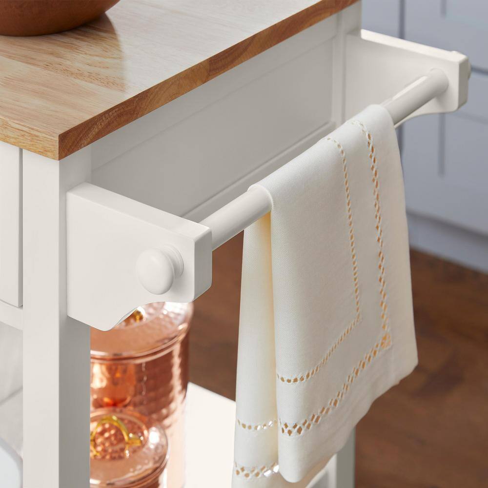 Tileon White Kitchen Island with Extensible Solid Wood Folding Table Top and Towel Rack