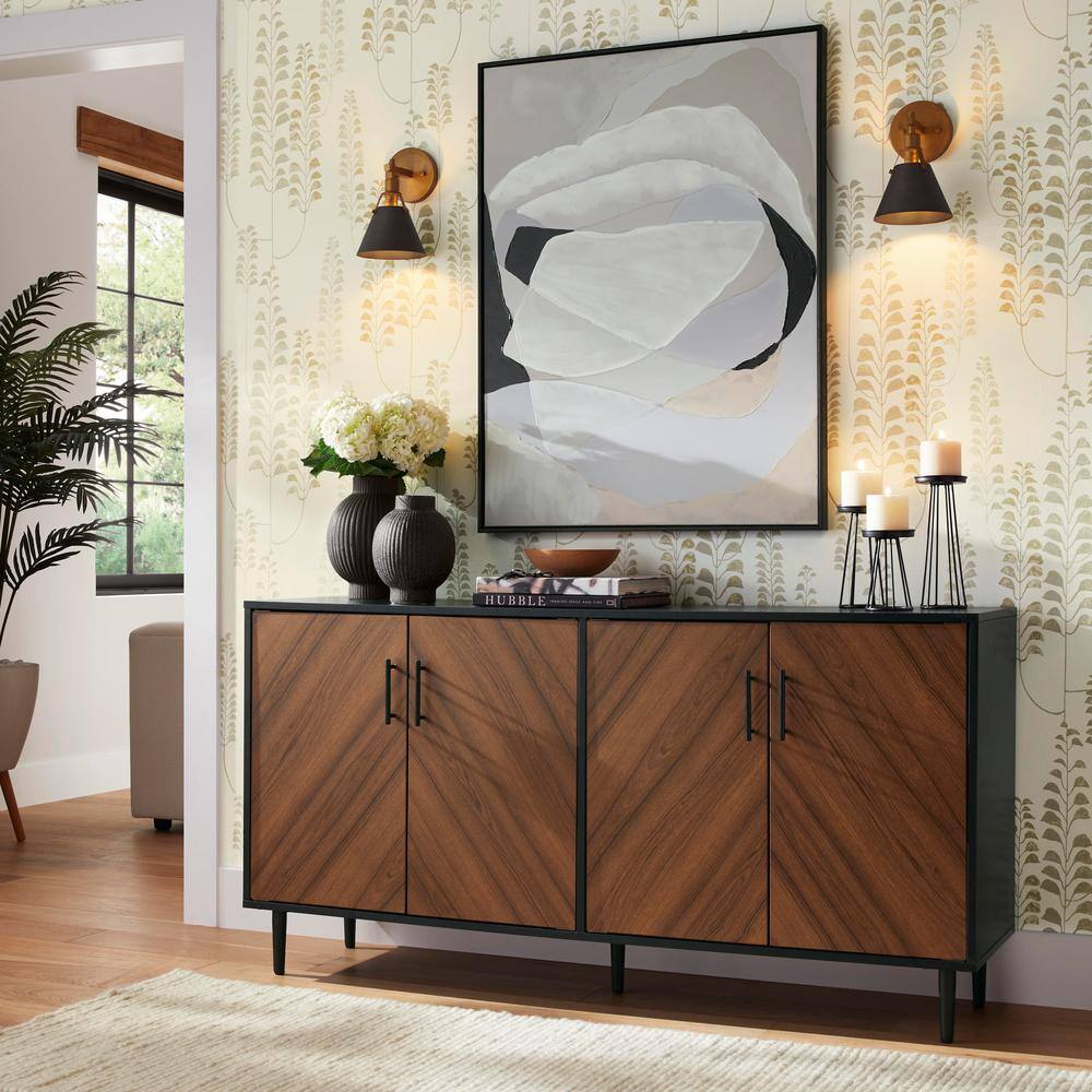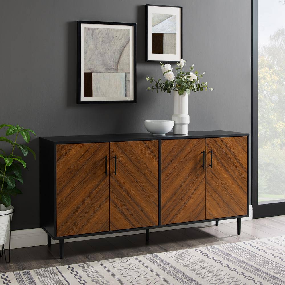 Walker Edison Furniture Company Hampton 58 in. Acorn Bookmatch and Solid Black Buffet Stand