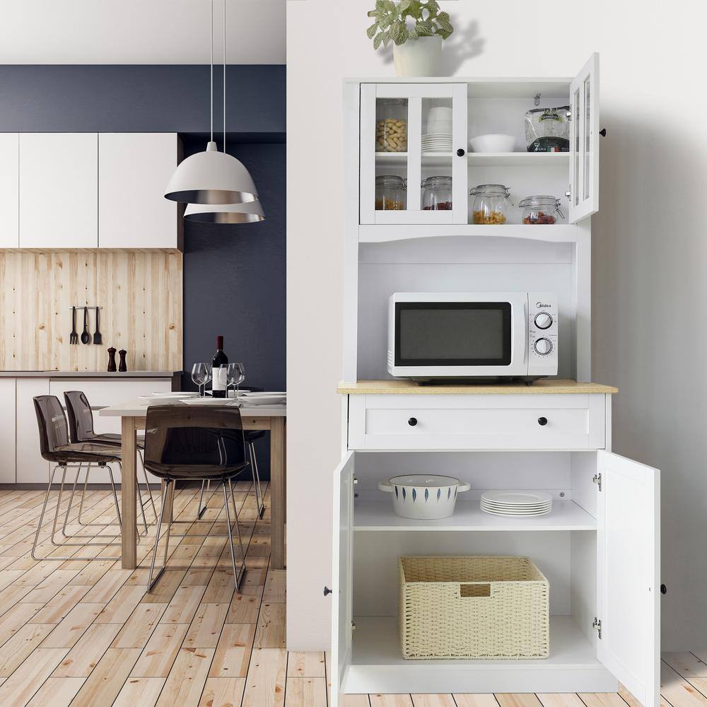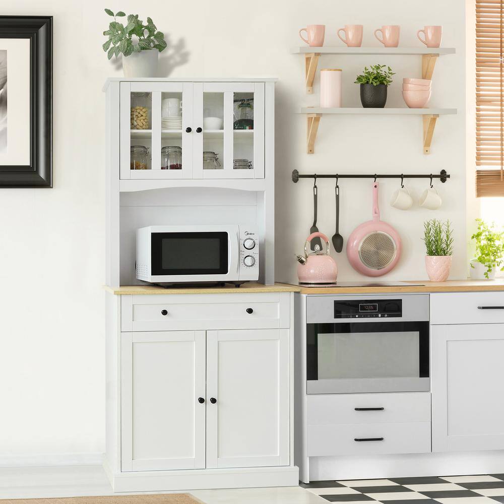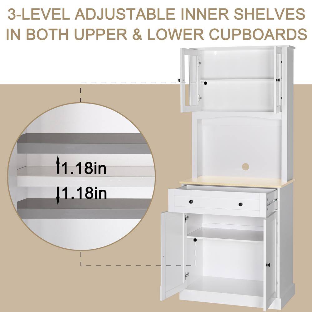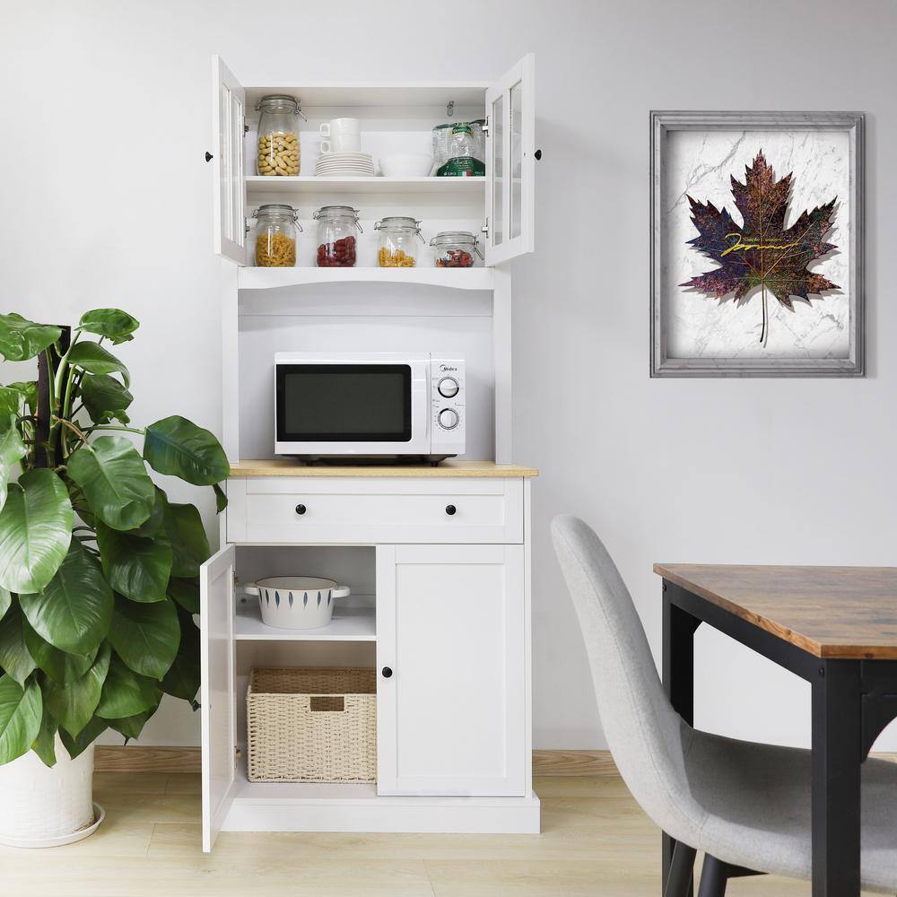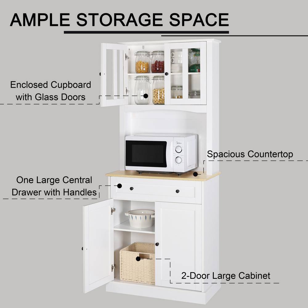 VEIKOUS 72 in. H White Kitchen Pantry Hutch Cabinet Storage with Buffet Cupboard. Microwave Stand and Adjustable Shelves