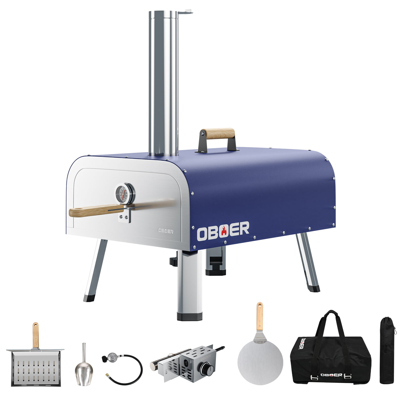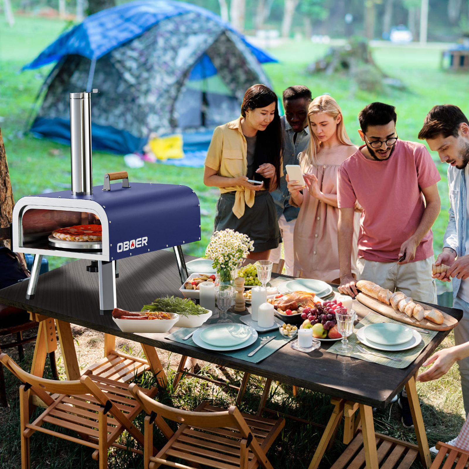 NAIZEA Outdoor Pizza Oven. Wood Fire Stainless Steel Pizza Grill. with Pizza Stone. Pizza Peel. Fold-up Legs. Cover(Blue)