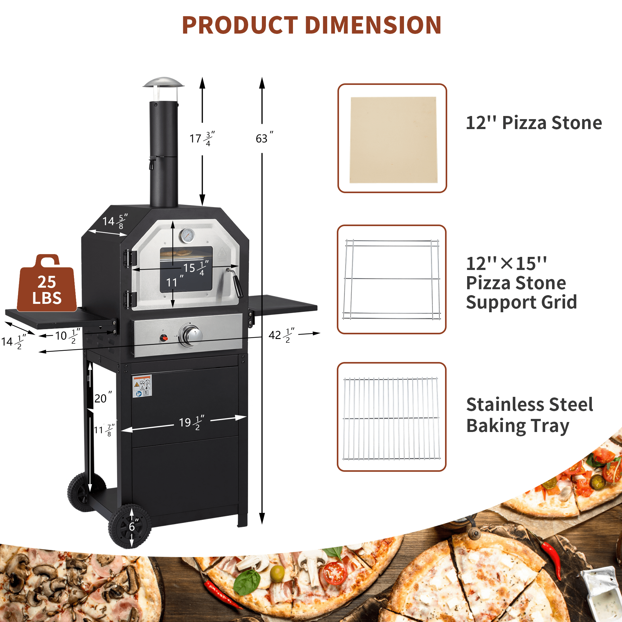 Outdoor Pizza Oven. Wood Fired Pizza Oven for Outside. Patio Pizza Maker with Pizza Stone