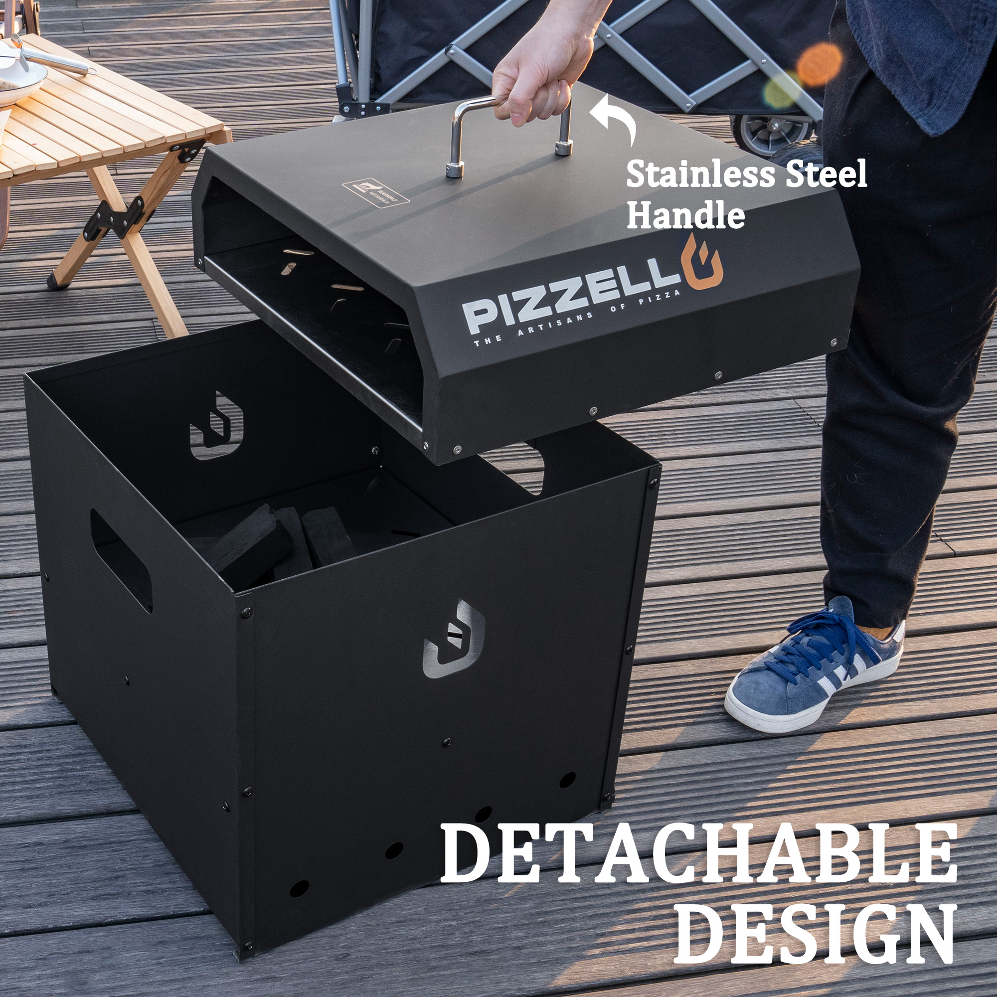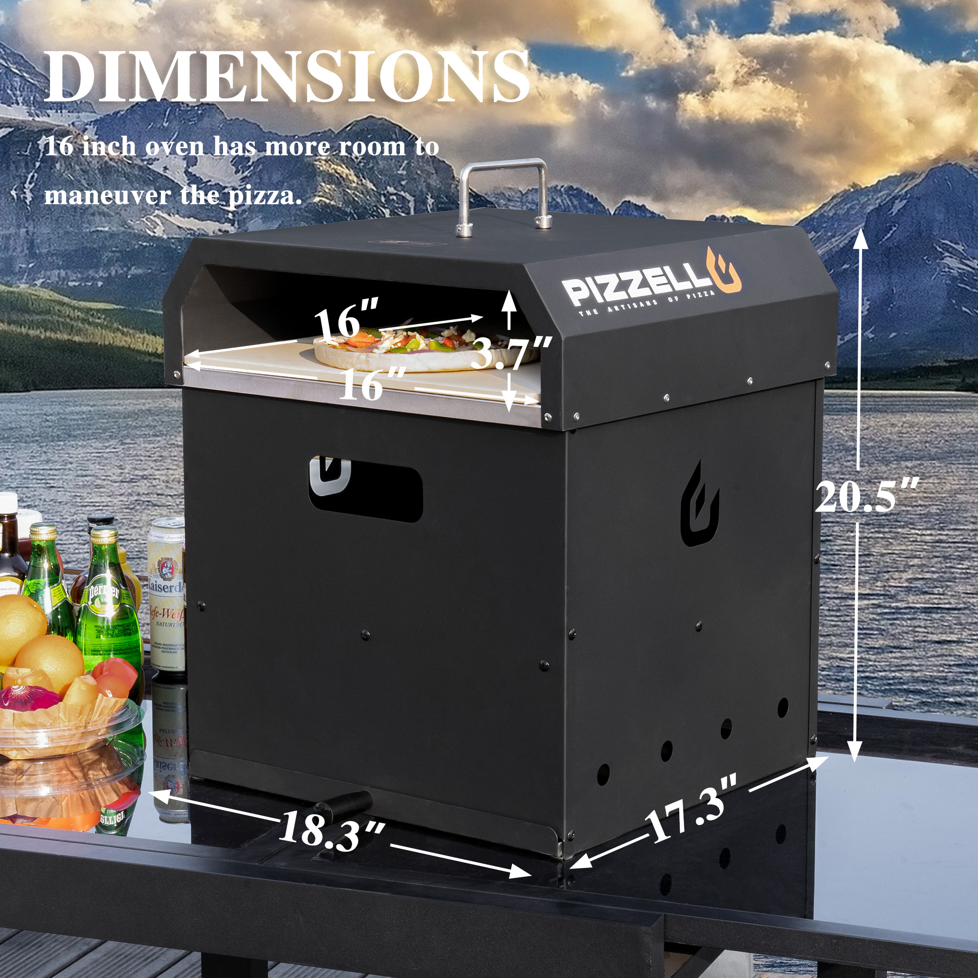 PIZZELLO Pizza Oven Bbq Wood Pellets 16″ Outdoor Pizza Ovens with Pizza Stone. Pizza Peel. Pizza Cutter. Cover. Cooking Grill Grate - Black