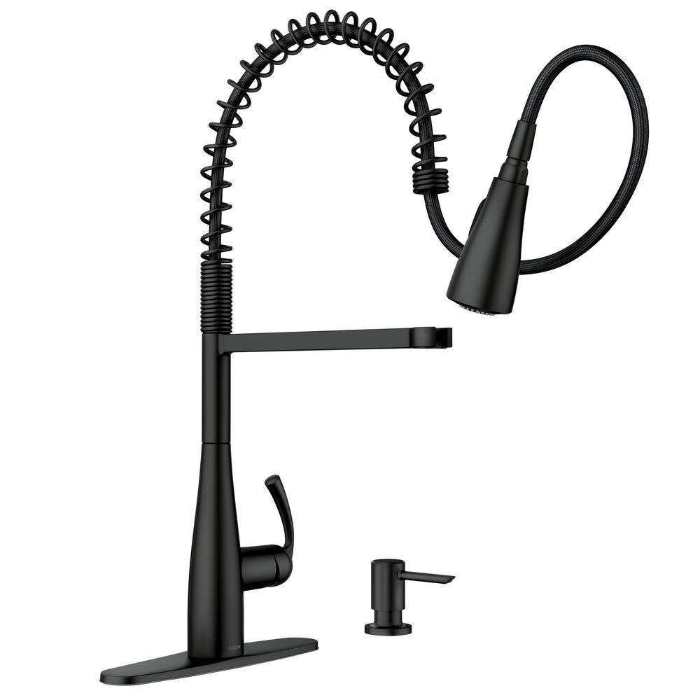 MOEN Essie Single-Handle Pre-Rinse Spring Pulldown Sprayer Kitchen Faucet with Power Clean in Matte Black
