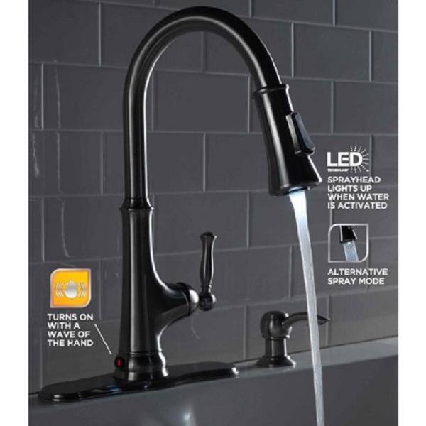 Glacier Bay Touchless LED Single-Handle Pull-Down Sprayer Kitchen Faucet with Soap Dispenser in Stainless Steel
