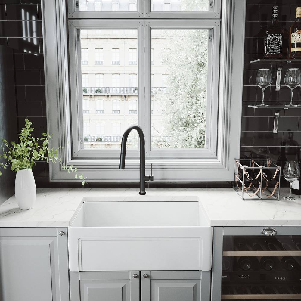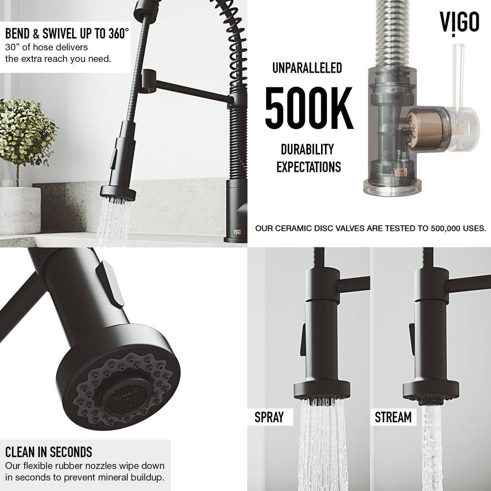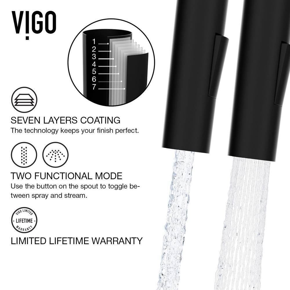 VIGO Edison Single Handle Pull-Down Sprayer Kitchen Faucet Set with Soap Dispenser in Matte Black