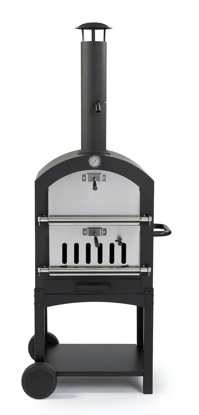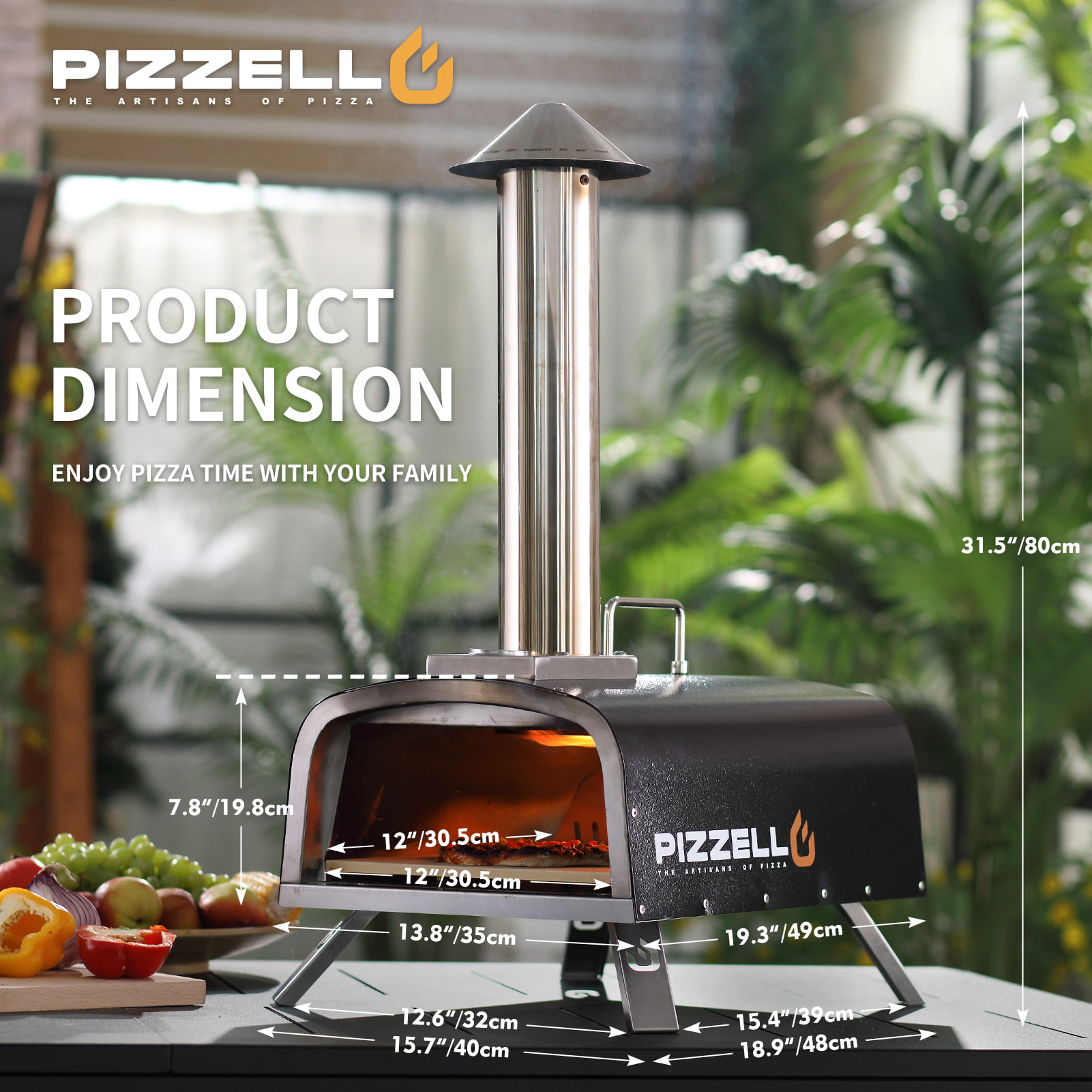 PIZZELLO Outdoor Pizza Oven 12″ Propane & Wood Fired Dual Fuel with Gas Burner. Wood Tray. Pizza Stone. Pizza Peel. Carry Bag. Thermometer - Black