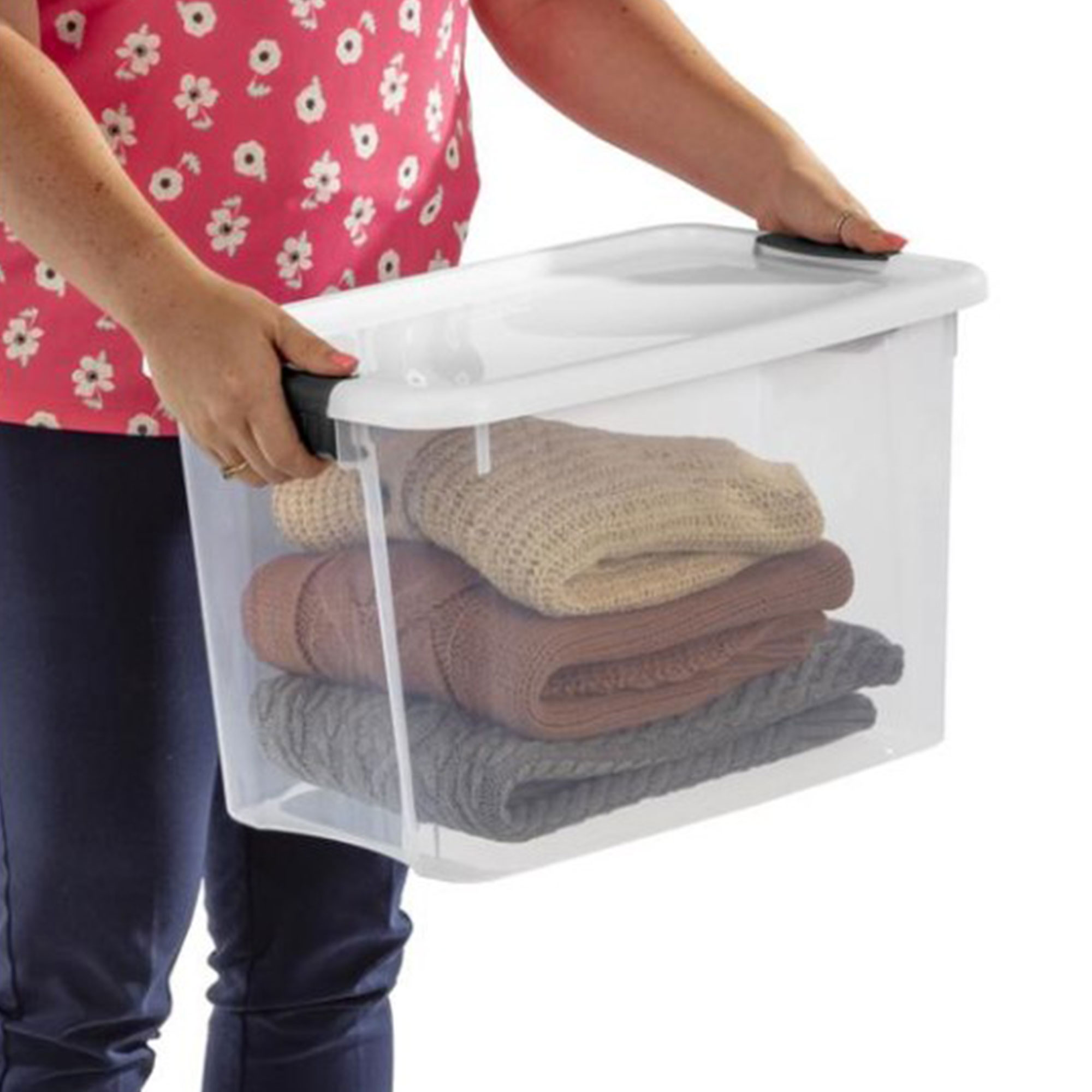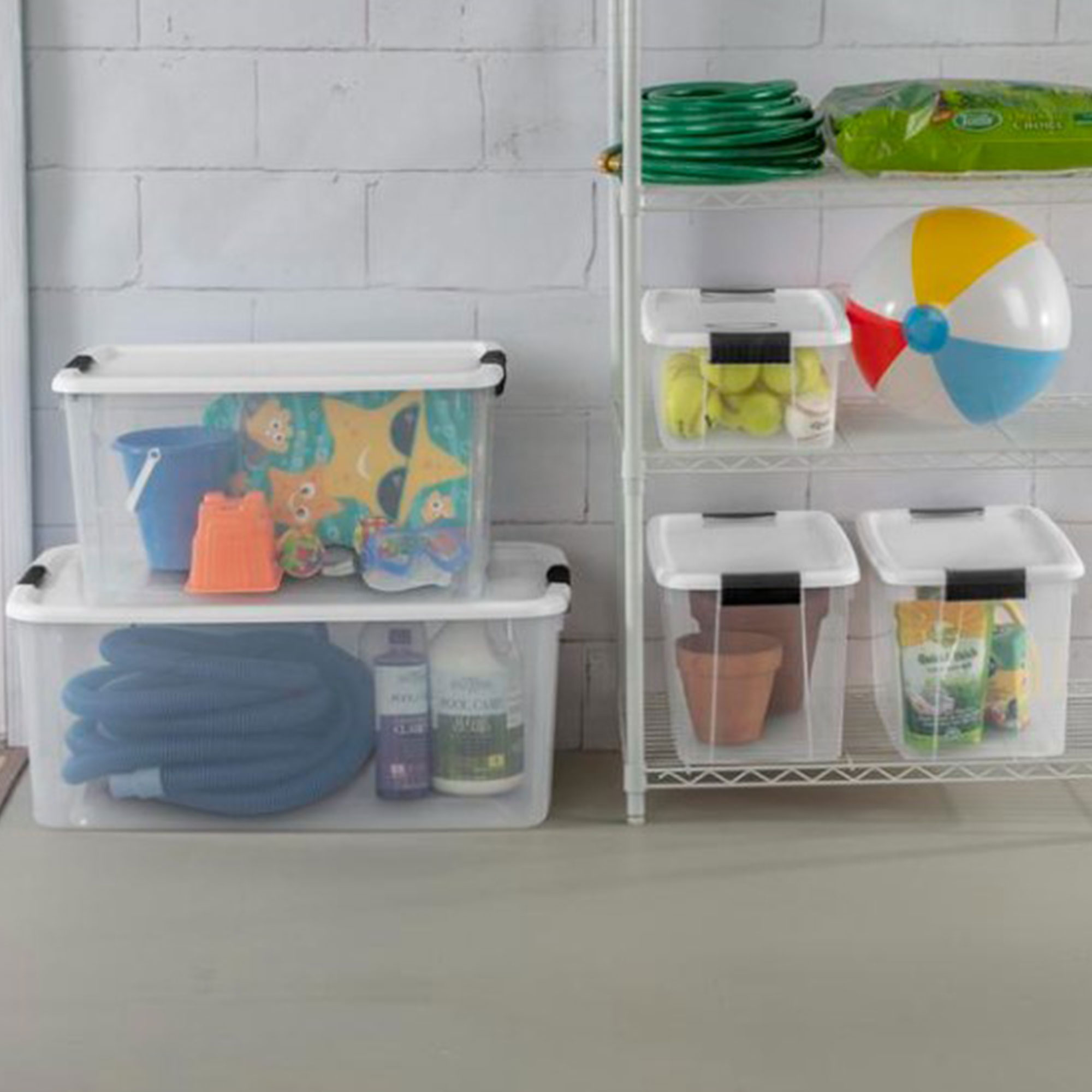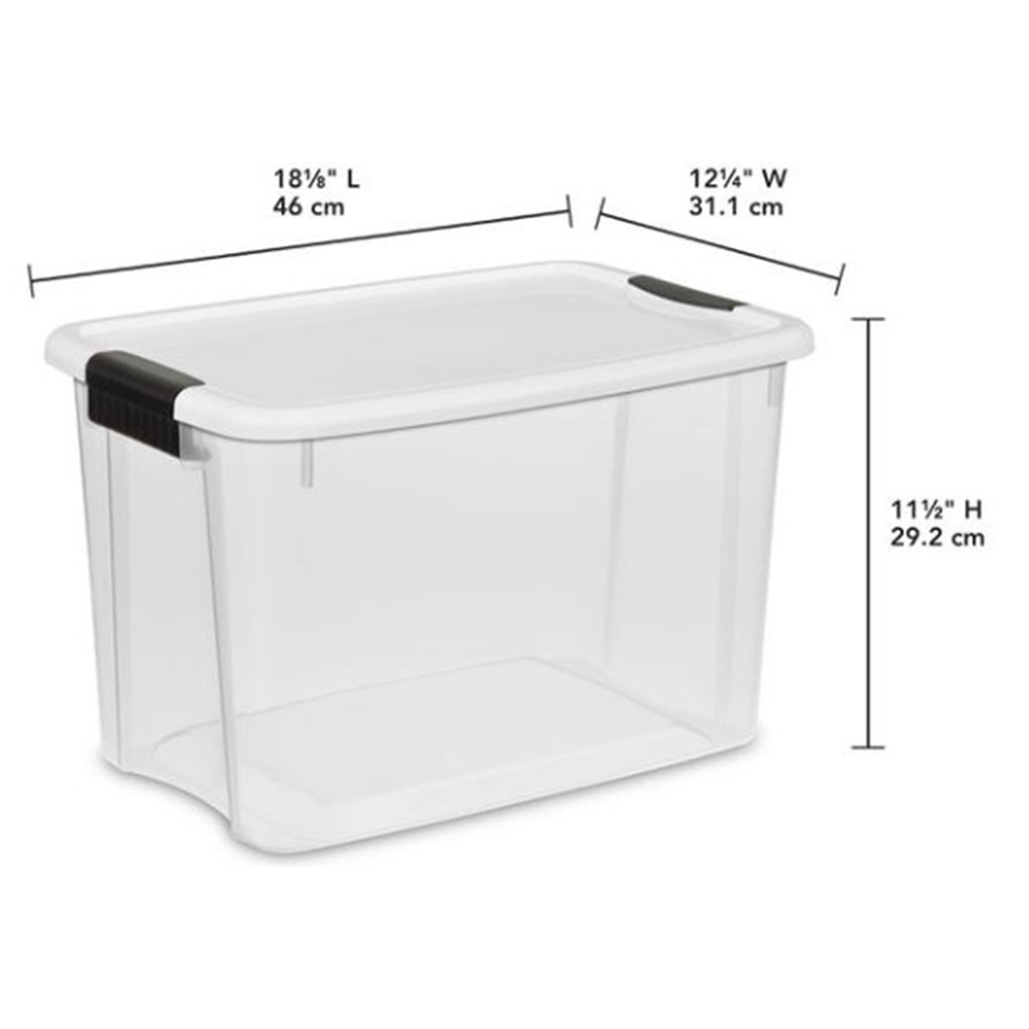 Sterilite 30 Quart Clear Plastic Storage Bin with White Latch Lid. 12 Pack