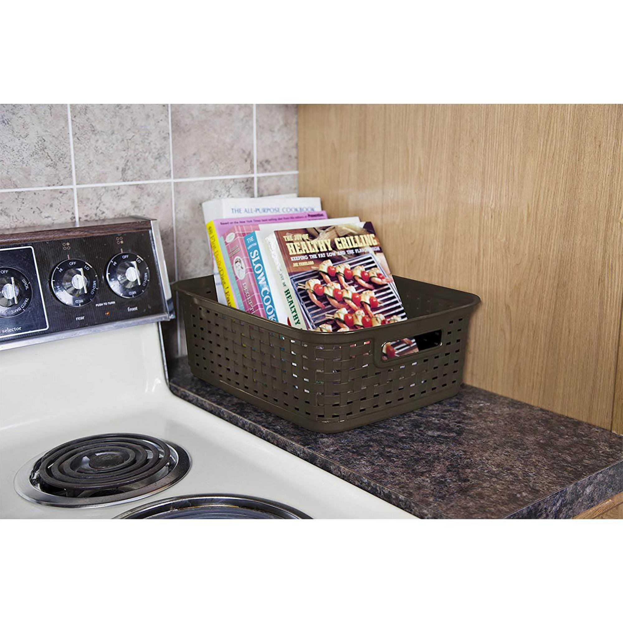 Sterilite Decorative Wicker-Style Short Weave Basket. Espresso 12726P06 (6 Pack)