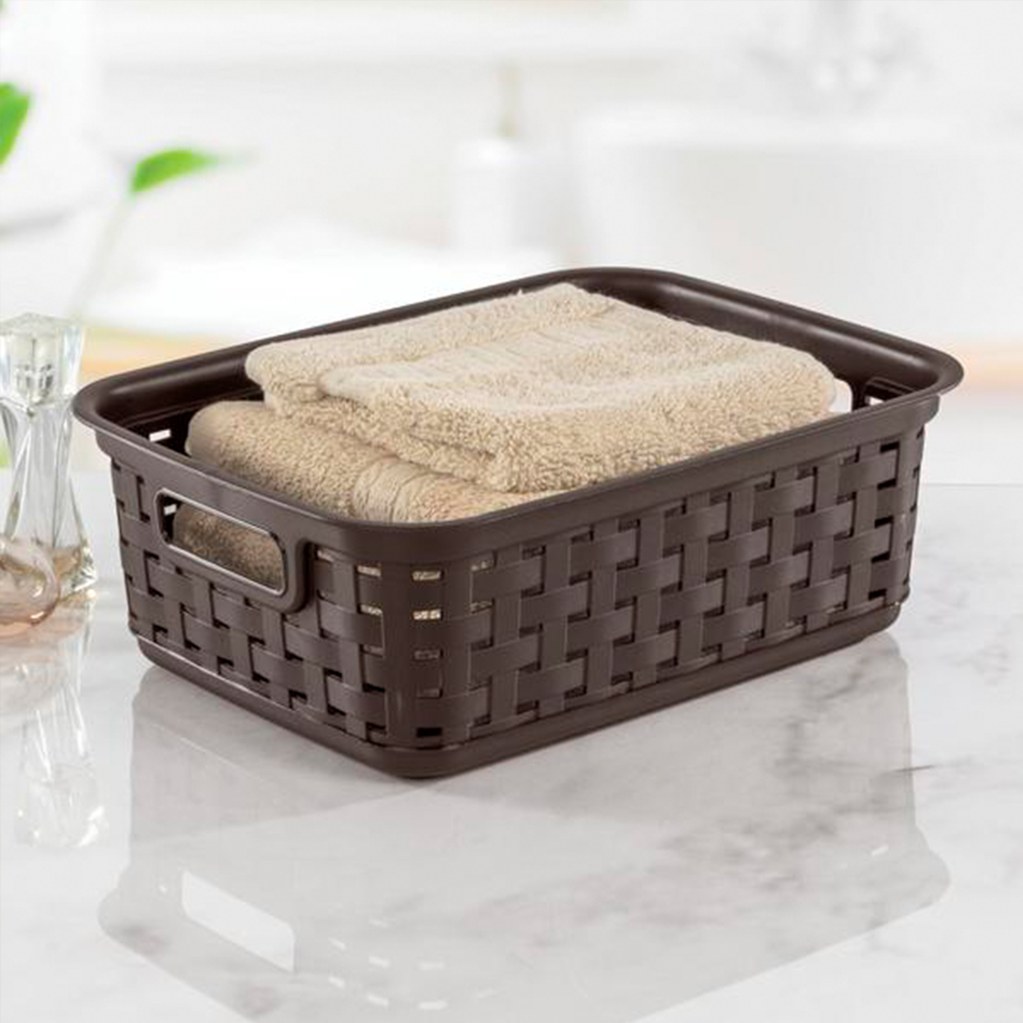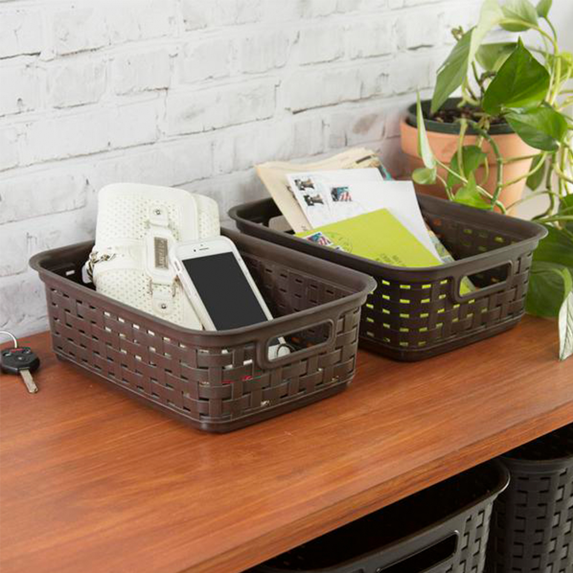 Sterilite Small 11 Inch Long Weave Storage Basket Organizer. Espresso (128 Pack)