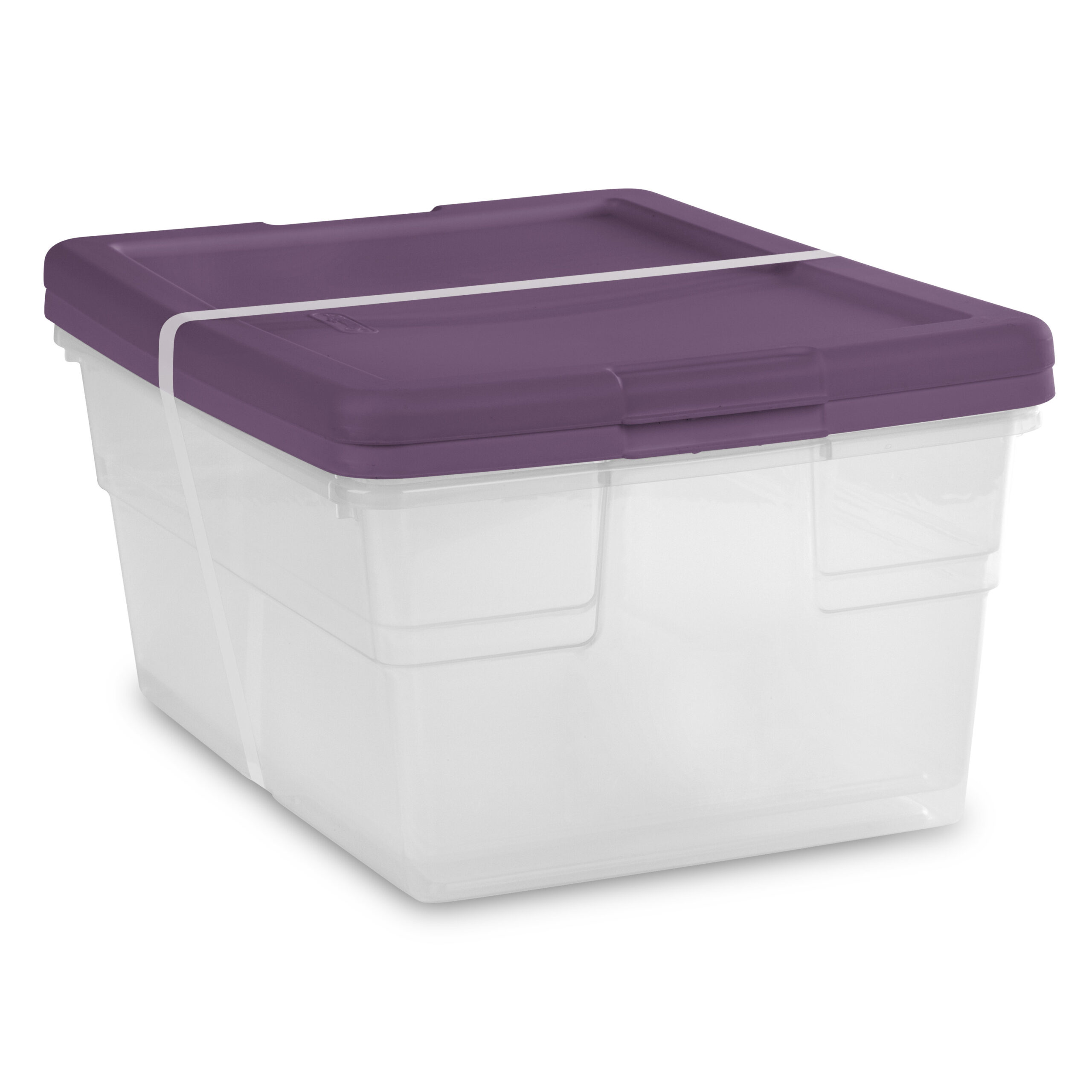 Sterilite Stackable 16 Qt Storage Tote. Clear. Purple Lid. (24 Pack)