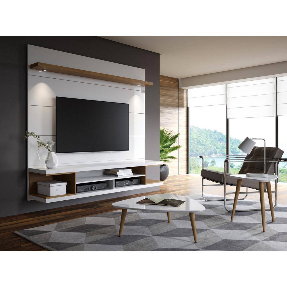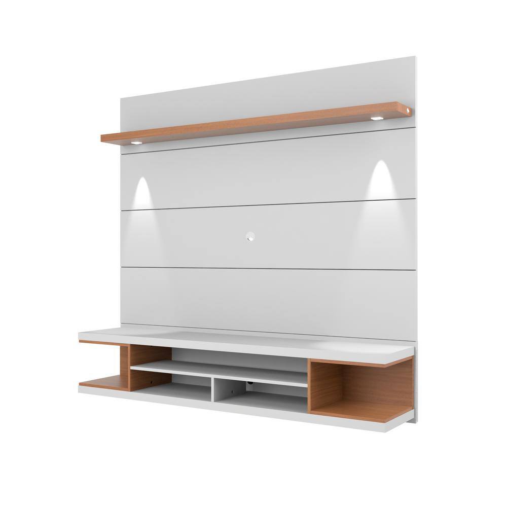 Manhattan Comfort Utopia 70 in. White and Maple Cream Particle Board Floating Entertainment Center Fits TVs Up to 60 in. with Wall Panel