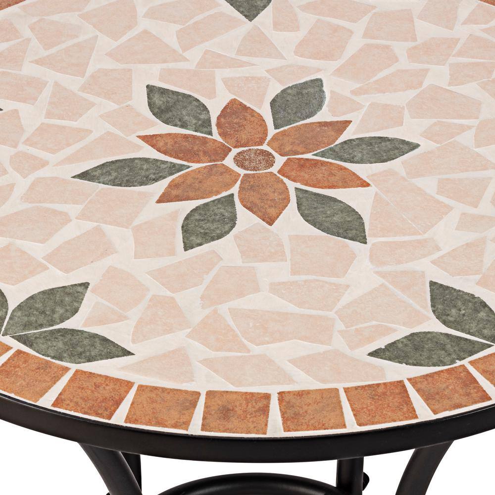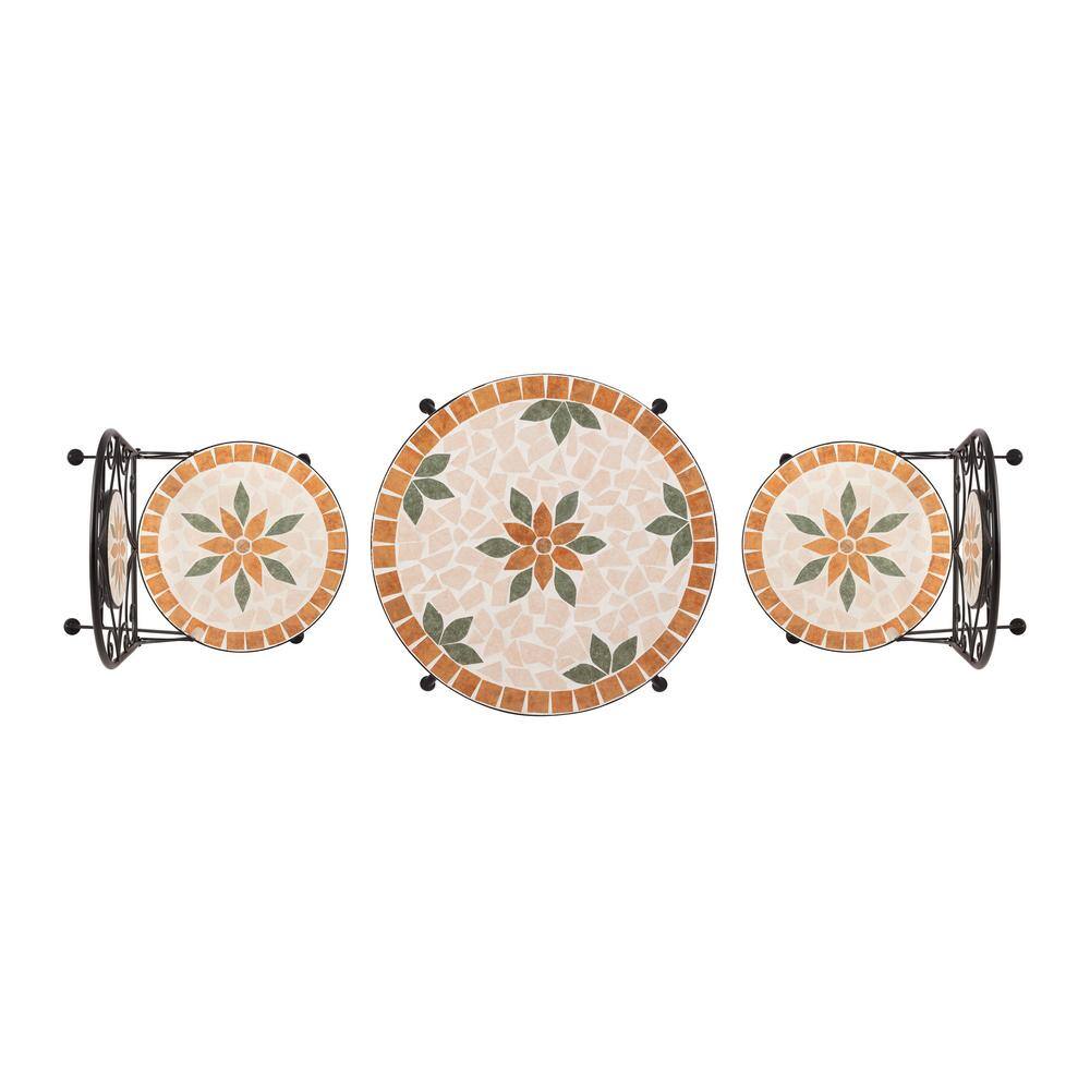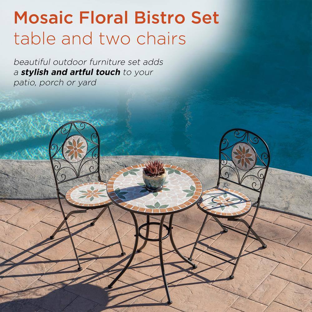 Alpine Corporation Indoor/Outdoor 3-Piece Mosaic Bistro Set Folding Table and Chairs Patio Seating. Tan