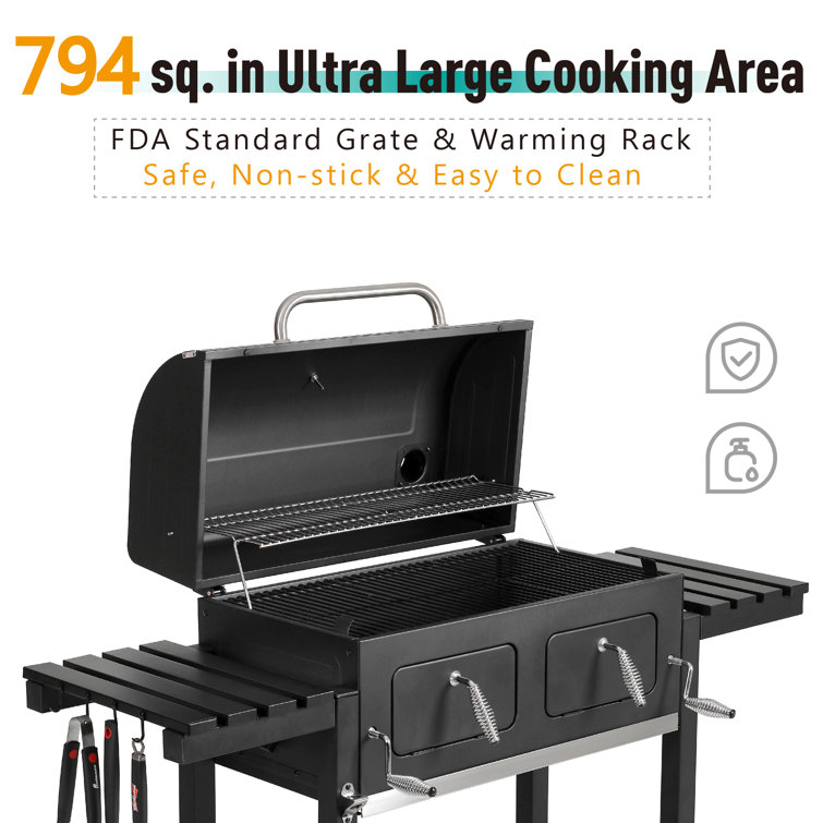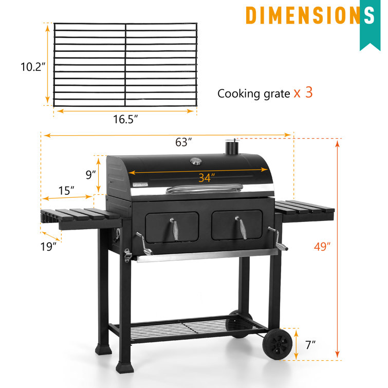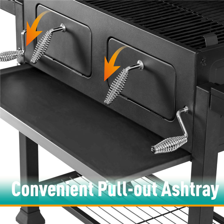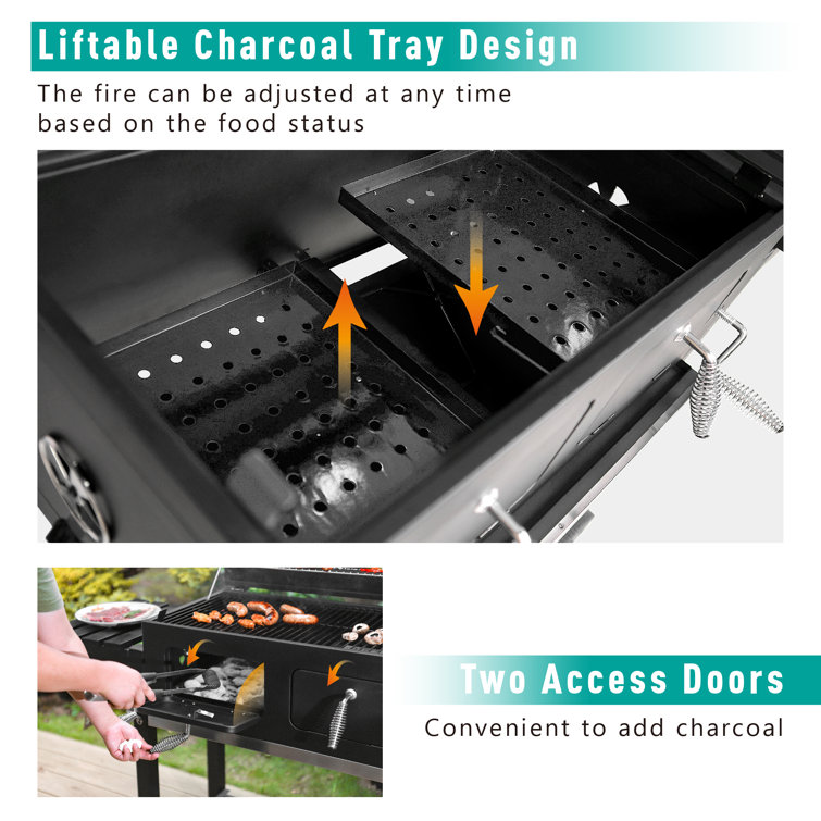 Alphamarts 34″ Barrel Charcoal Grill with Two Individual Liftable Charcoal Trays to Achieve Dual Zone Cooking