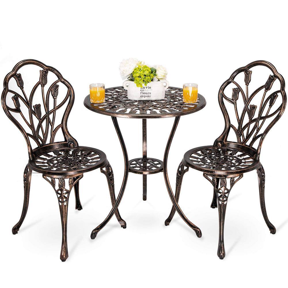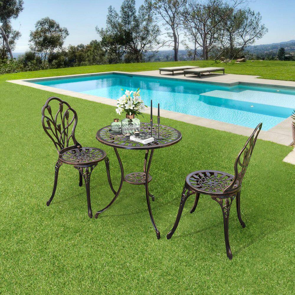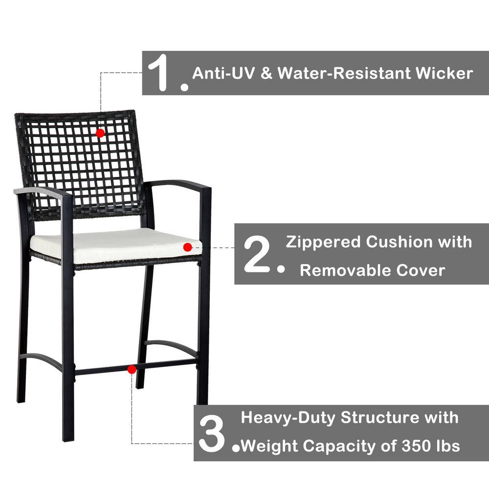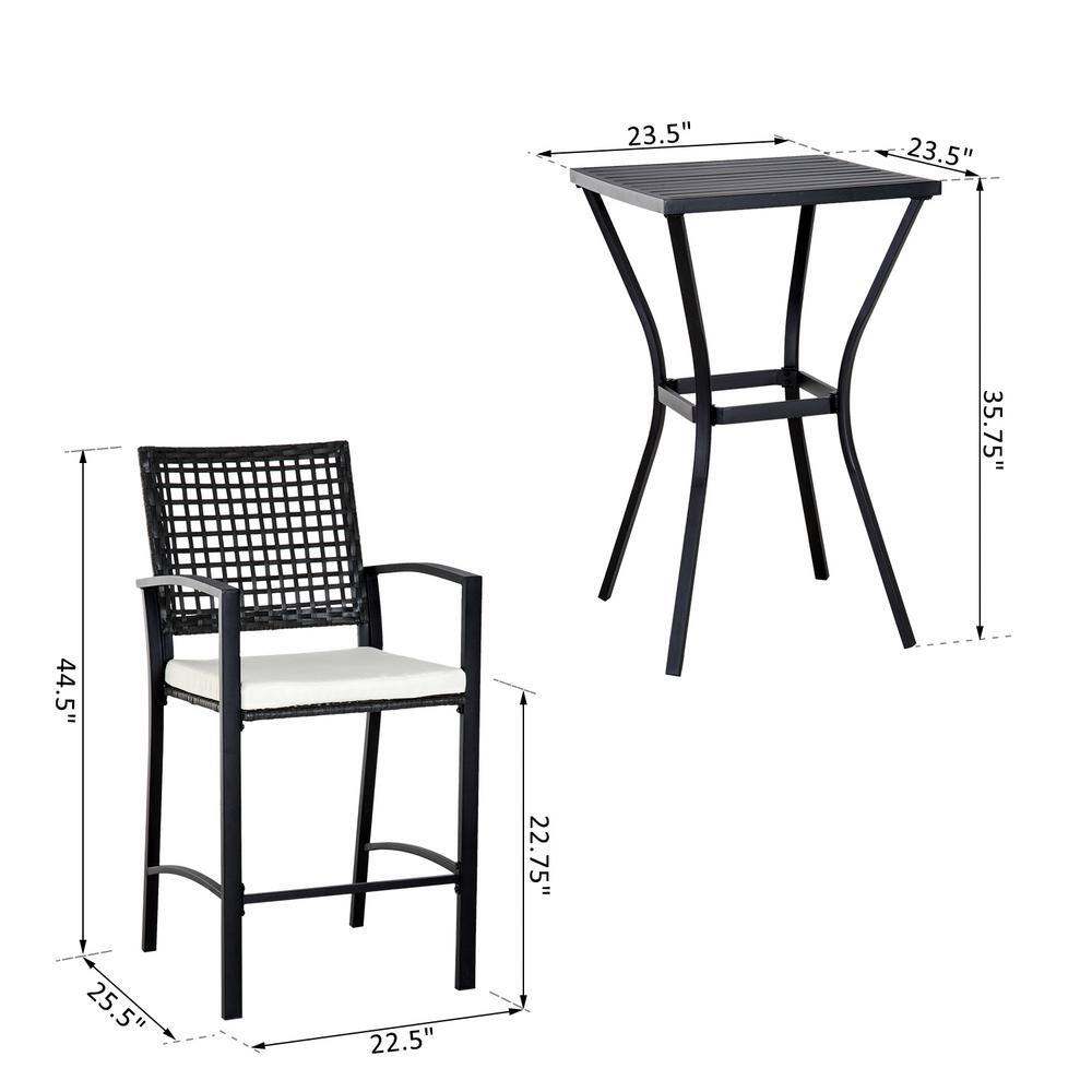 Outsunny 3-Piece All-Weather Steel Patio Outdoor Bar Bistro Furniture Set with White Cushions. Middle Table